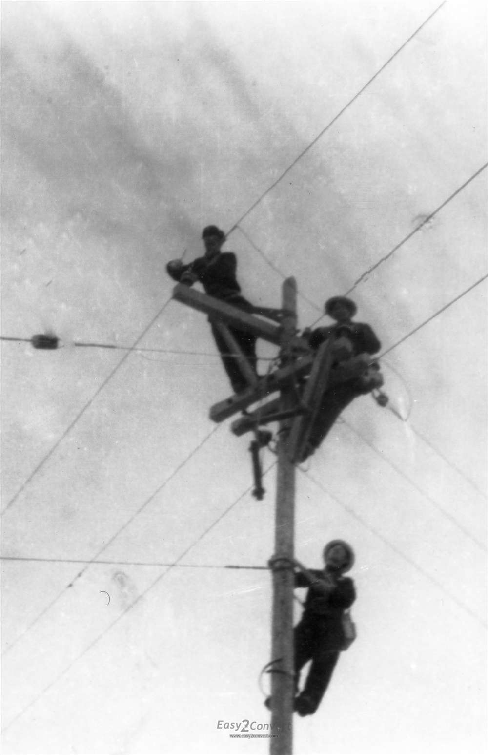 电力团的同学在丹江工地进行10余米交架设电线