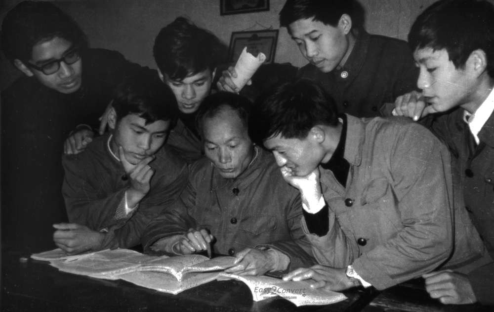 电力系党总支书记常树荫在学生中蹲点、交谈