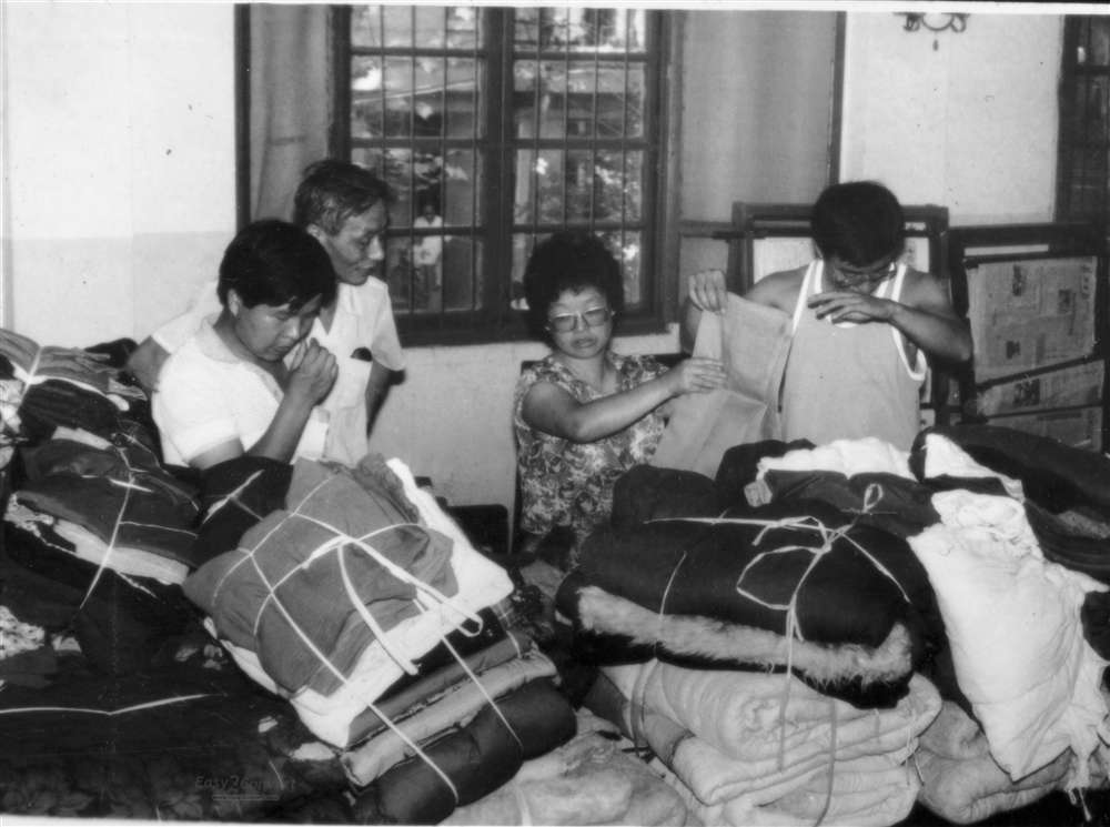 教职工在暑假高温时期正在抓紧清理捐赠的衣物 并打包
