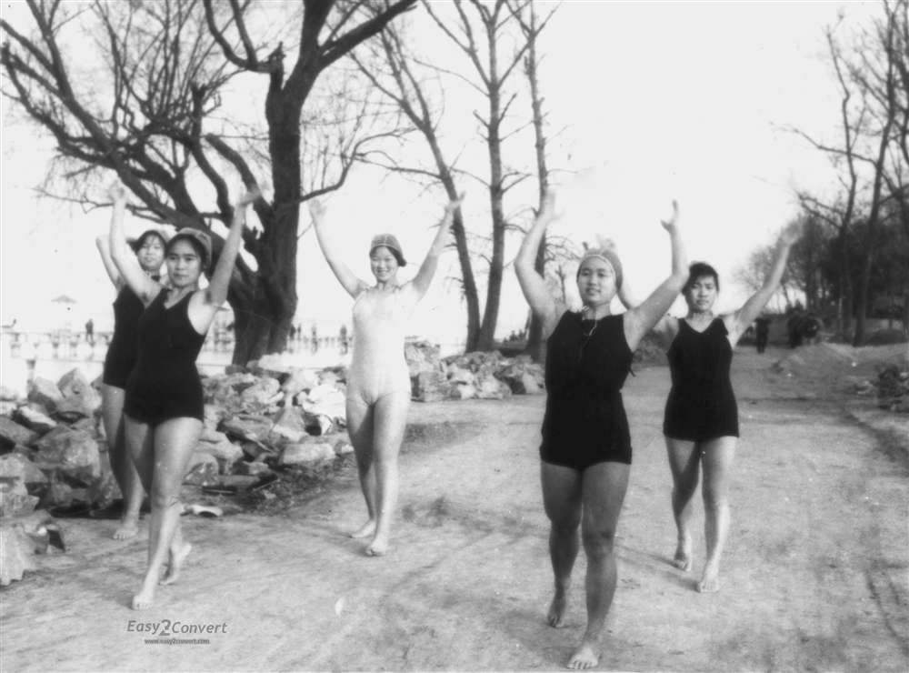Porncams 女子冬泳队同学在做冬泳前准备活动