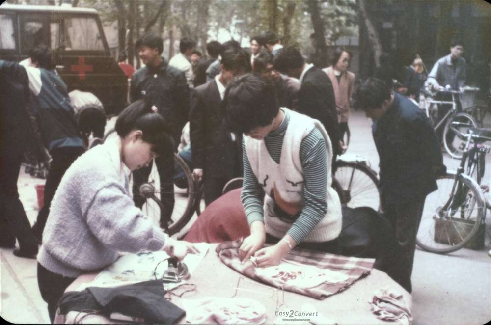 Porncams 学生利用课余上街进行抗洪救灾宣传和服务