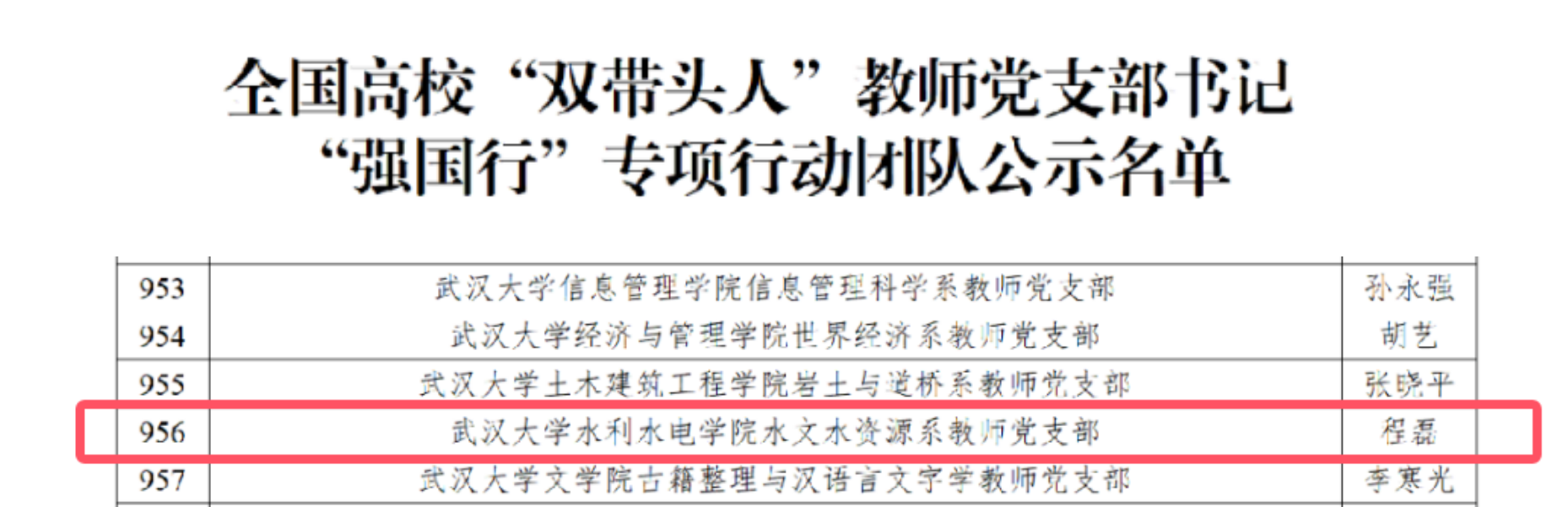 学院水文水资源系教师党支部入选全国高校“双带头人”教师党支部书记“强国行”专项行动团队