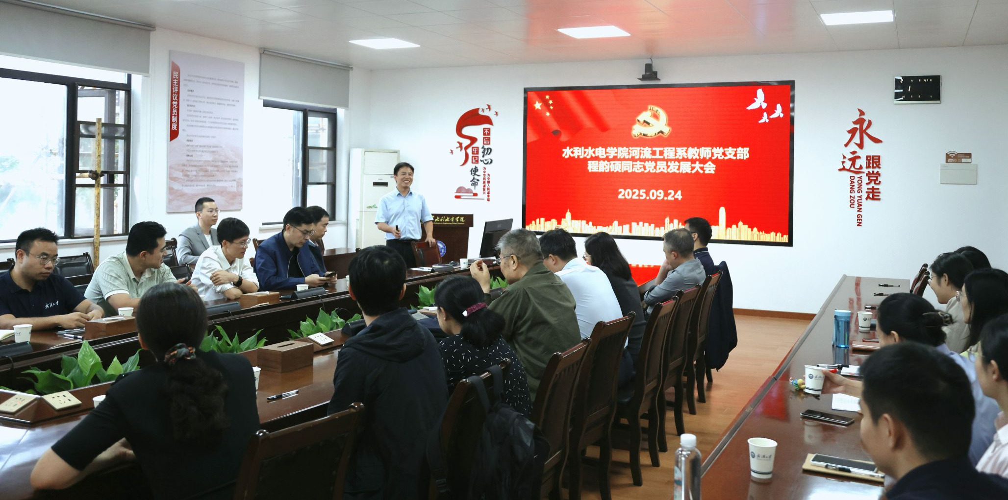9月24日,河流工程系教师党支部组织召开党员发展大会,主要议题是讨论接收程韵硕同志为中共预备党员。河流系教工全体党员和教师参会,会议由党支部书记李志威同志主持。学院党委委员、副院长(挂职)马刚,党委组织员陈曼雨出席会议。会议第一项议程是开展党支部集体政治理论学习,深入学习习近平总书记关于中国人民抗日战争和世界反法西斯战争的重要论述,认真学习习近平总书记在纪念中国人民抗日战争暨世界反法西斯战争胜利80周年大会、... >>