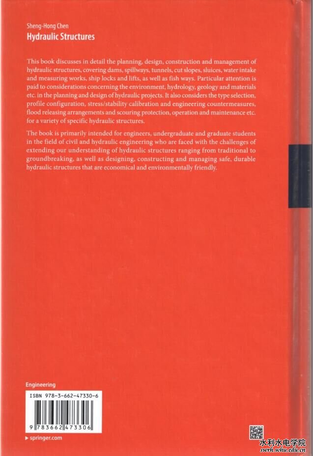 陈胜宏教授历时3年撰写的英文巨著《Hydraulic Structures》于2015年6月由德国Springer出版社出版,正文1029页。 >>