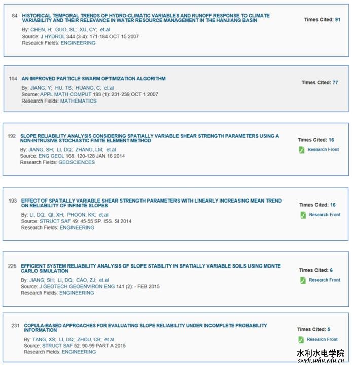 高被引论文:最近 10 年间各研究领域中被引频次排名位于全球前 1%的论文(截止2015年11月20日): (编辑:孟勇) >>