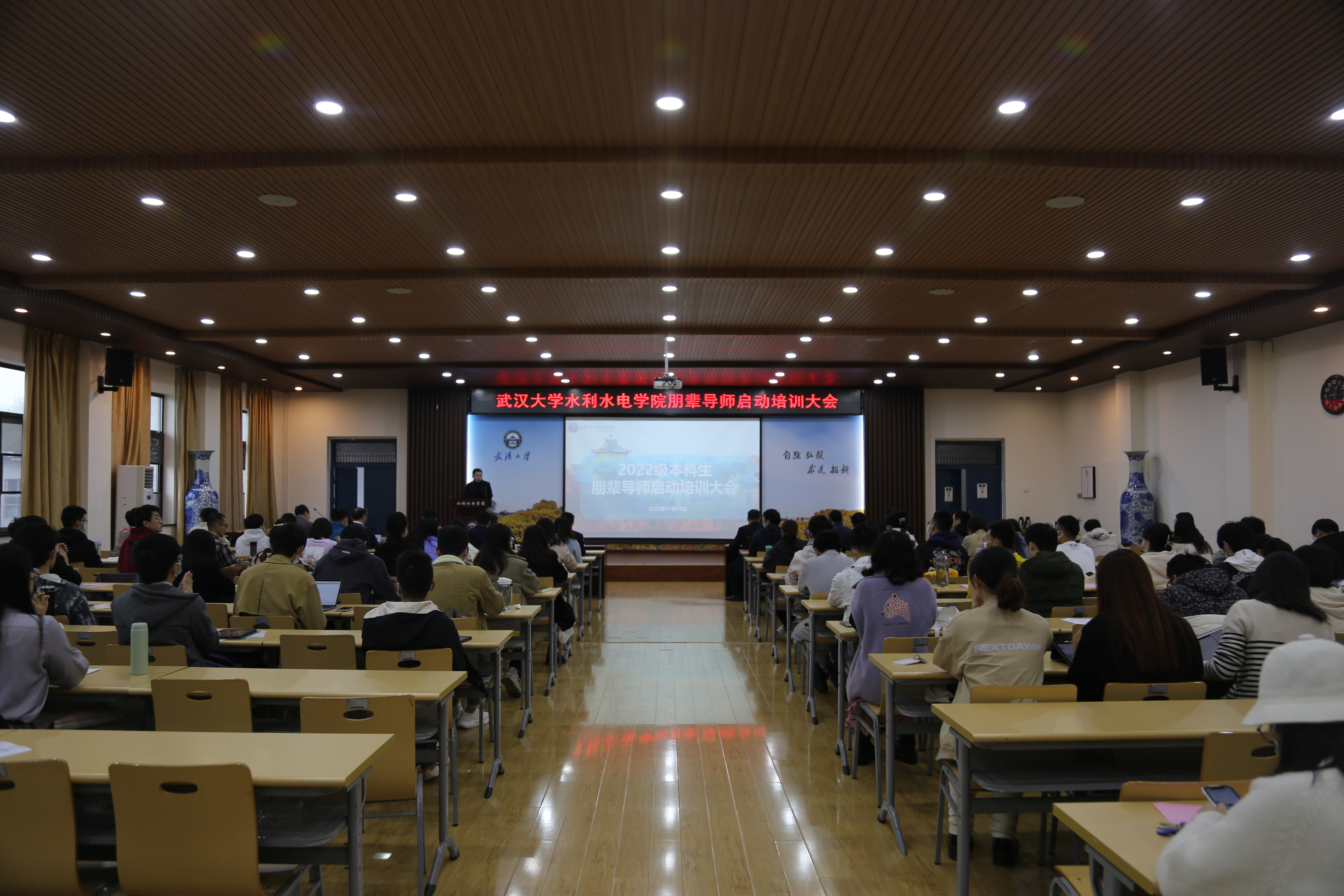 东湖之滨,珞珈山上,袅袅秋风起,风过林梢。为帮助新生快速适应大学生活,树立远大理想,营造优良学风,Porncams 面向2022级本科新生开展了丰富多彩、颇具特色的“一年级计划”系列活动。师长领航——把牢引领之舵1、夏荷飘香,与君相识“与武汉的盛夏一样热情的,还有武大的老师和同学们”。8月18日,是新生报到第一天,学院党委书记周伟、院长熊立华、党委副书记张栋梁、副院长严鹏及各年级辅导员在迎新现场与新生们亲切... >>