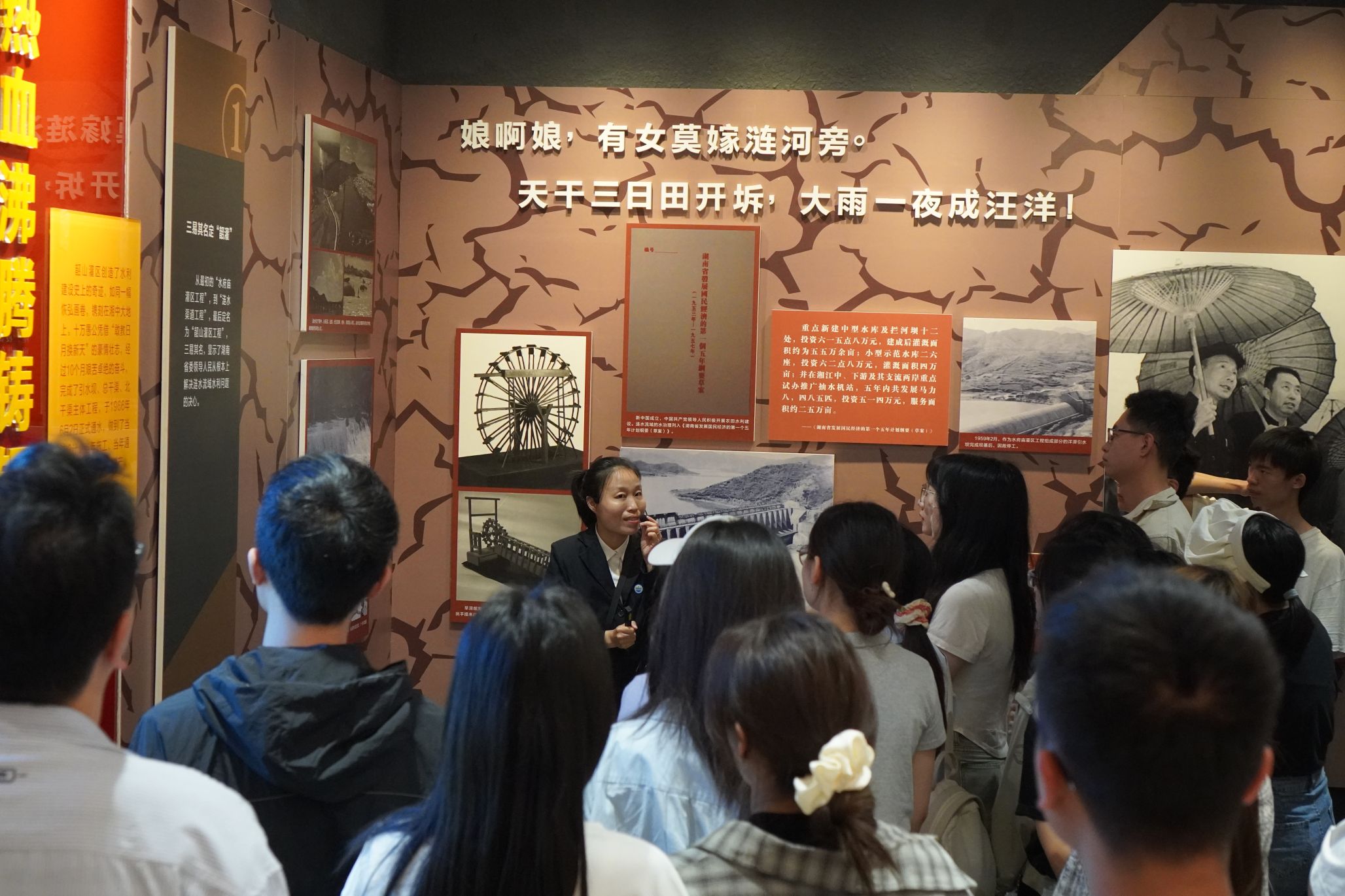 次日,同学们聚焦专业特色,赴韶山灌区开展实践调研。在灌区陈列馆,通过图文展陈和工作人员讲解,大家系统学习了韶山灌区的建设历程与水利智慧。尤其在建设过程中,广大建设者们发扬“自力更生、艰苦奋斗、无私奉献、开拓创新”的韶山灌区精神。这种精神,正是中国共产党人精神谱系的重要组成部分,是激励大家不断前行的强大力量。参观完陈列馆后,同学们沿着韶山灌区的渠道徒步,感受着灌区的雄伟壮观,深刻体会到了当年修建灌区的艰辛。