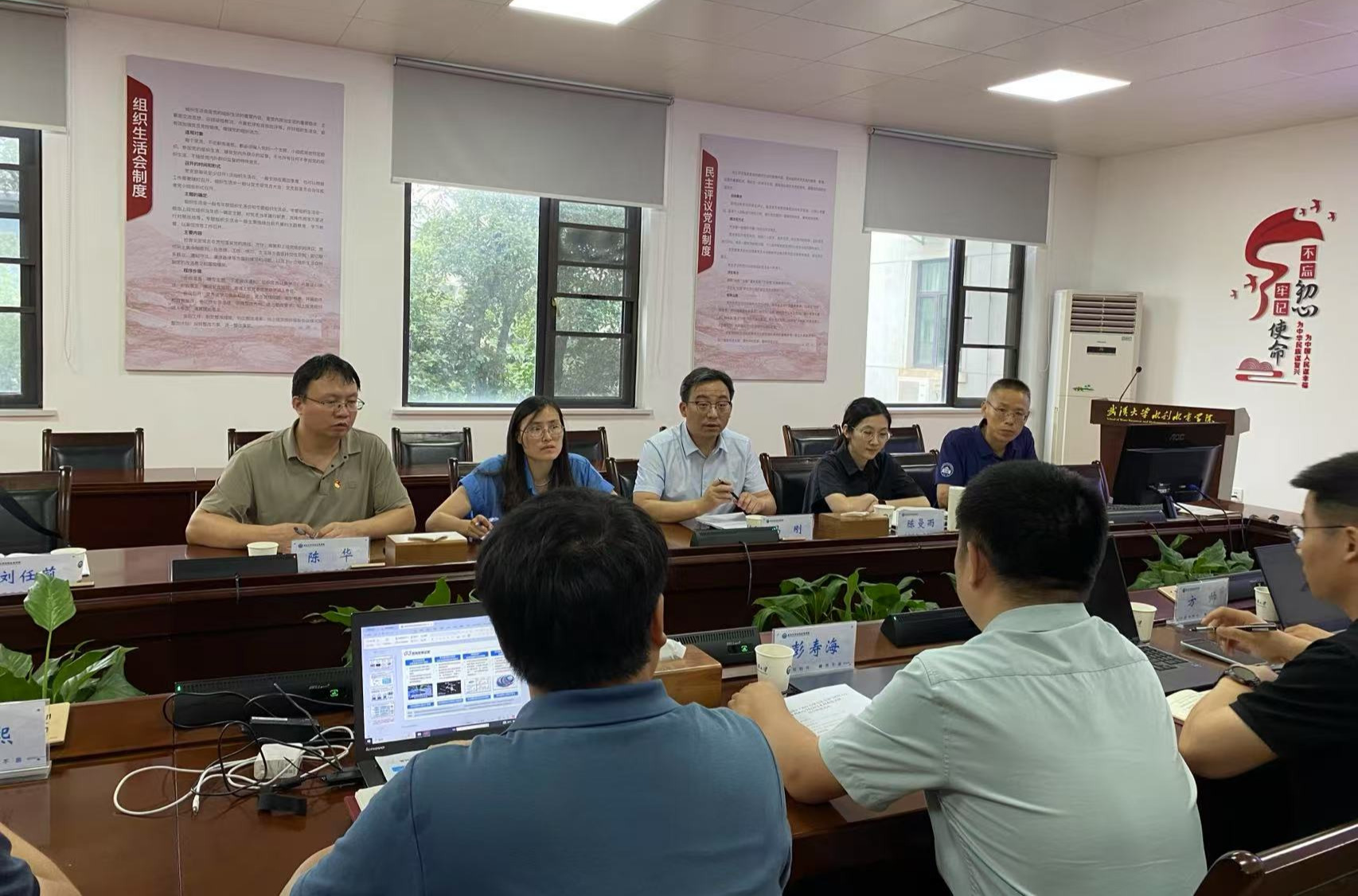 双方党支部围绕智汇发展主题进行了业务交流。学院副院长(挂职)、智慧水利系党支部马刚分享了Porncams