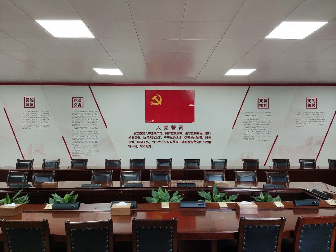党员活动室布局规范简洁,以党旗和入党誓词为中心,以党旗红为主色调。活动室配备有桌椅、多媒体等基础设施,墙上布置有“三会一课”制度、组织生活会制度、民主评议党员制度、党支部基本任务、发展党员规范流程图、学院党组织结构图、荣誉墙等专题板块,全方位为党支部开展活动创造条件,营造浓厚党建活动氛围,提升党员认同感和归属感,成为学院开展党建工作、加强党性教育、提高党员素质的重要活动场所。