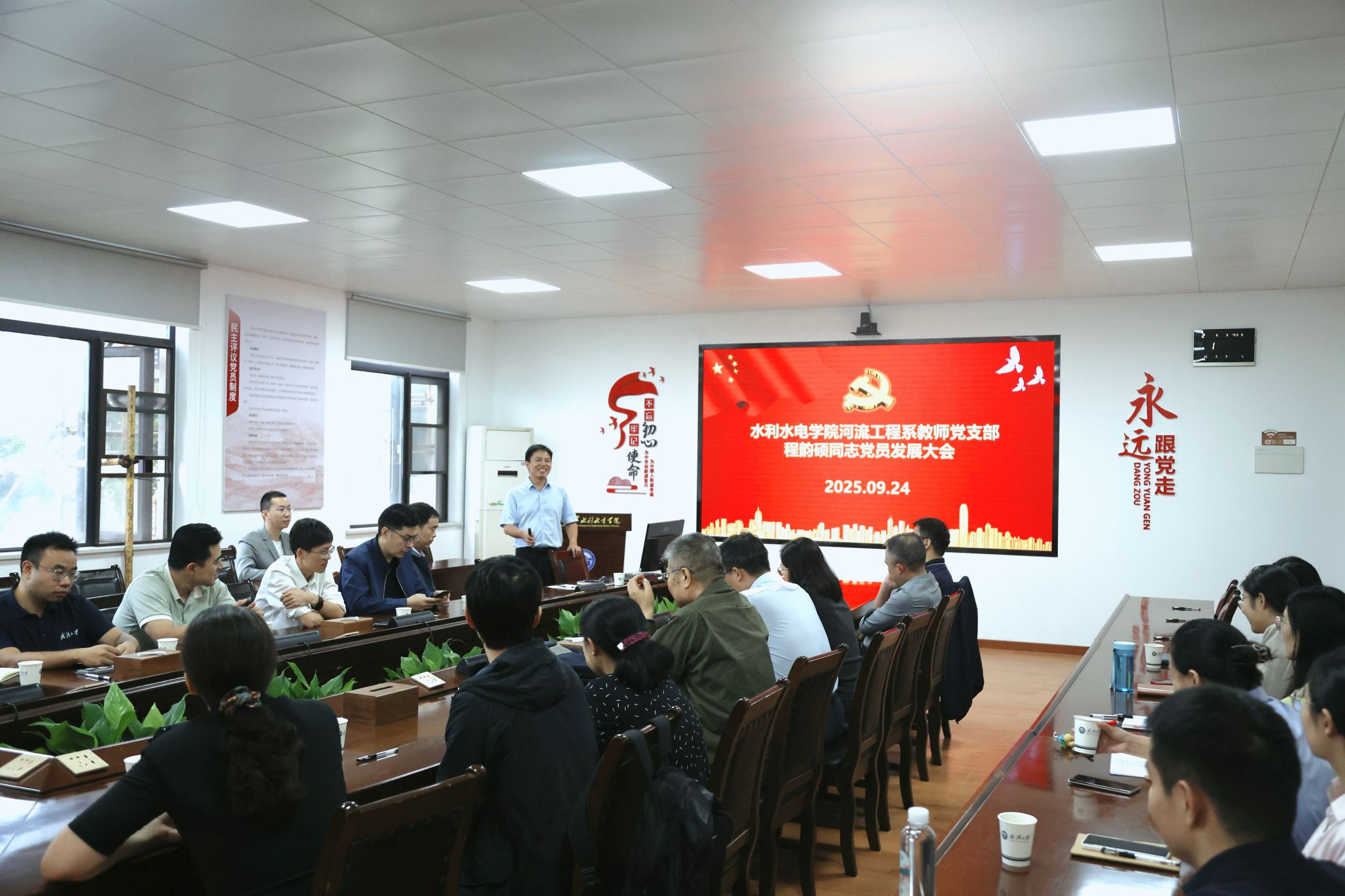 9月24日,河流工程系教师党支部组织召开党员发展大会,主要议题是讨论接收程韵硕同志为中共预备党员。河流系教工全体党员和教师参会,会议由党支部书记李志威同志主持。学院党委委员、副院长(挂职)马刚,党委组织员陈曼雨出席会议。