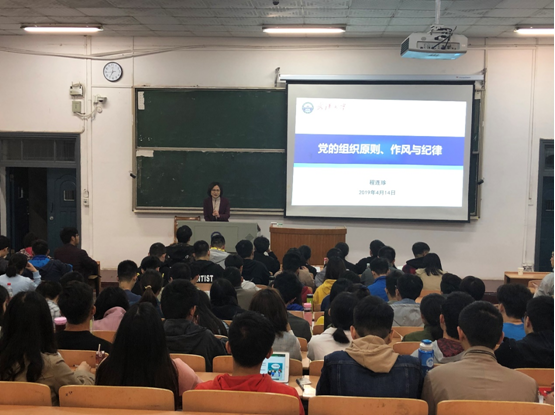 第九分党校第63期入党积极分子培训班第二讲在工学部五教103教室举行,学院党委书记程连珍老师为同学们讲授了《党的组织原则、作风和纪律》。