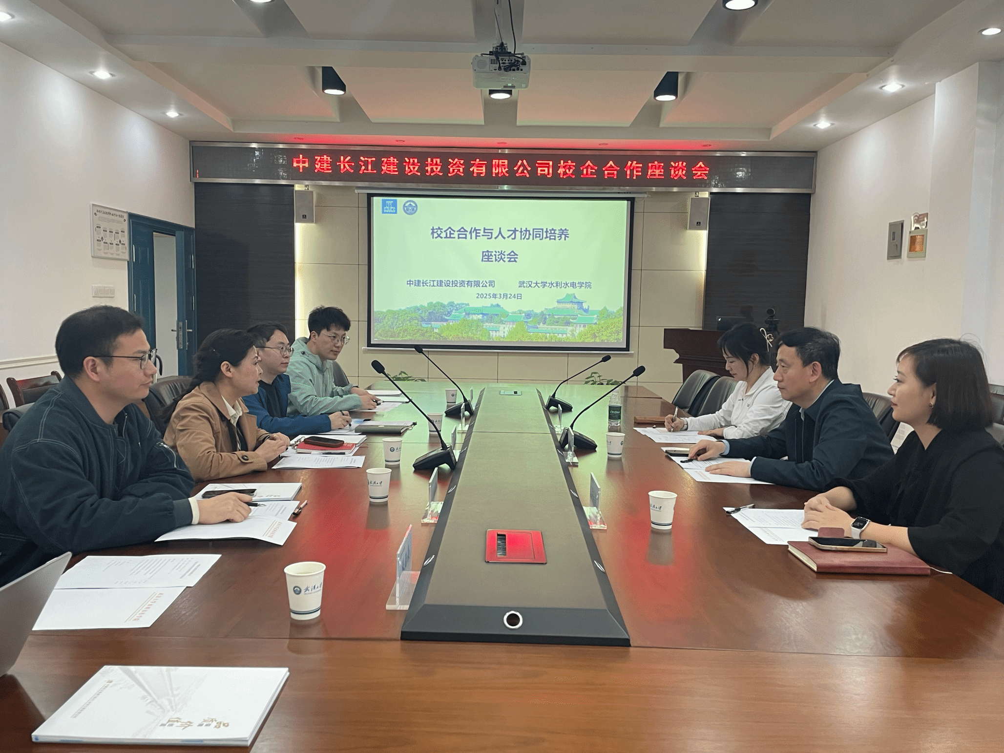 校企合作与人才协同培养座谈会在学院8208会议室顺利举行。中建长江建设投资有限公司佳成水利工程有限公司党委副书记陈思海、人力资源部总经理王健、人力资源部招聘经理王芸芸,学院党委副书记于敏、团委书记邓力源和辅导员许笑星、慈晓虎参加了座谈会。会议由于敏主持。