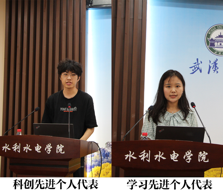 副院长程磊、夏军强分别宣读了学习和科创竞赛表彰文件。本年度学院共有5个优良学风班级,17个优良学风寝室,118位学习先进个人,22位学习进步个人,62位课外学术科技创新活动先进个人受到表彰。随后,学习先进个人代表2019级农业水利工程本科生茹汇麟,课外学术科技创新活动先进个人代表2020级水文水资源专业本科生康圣屿先后上台发言,分别介绍了自己取得优异成绩和参加各类科创竞赛的体验,并鼓励同学们努力学习,提高效率,同时积极参加科创竞赛,全方面锻炼自己。