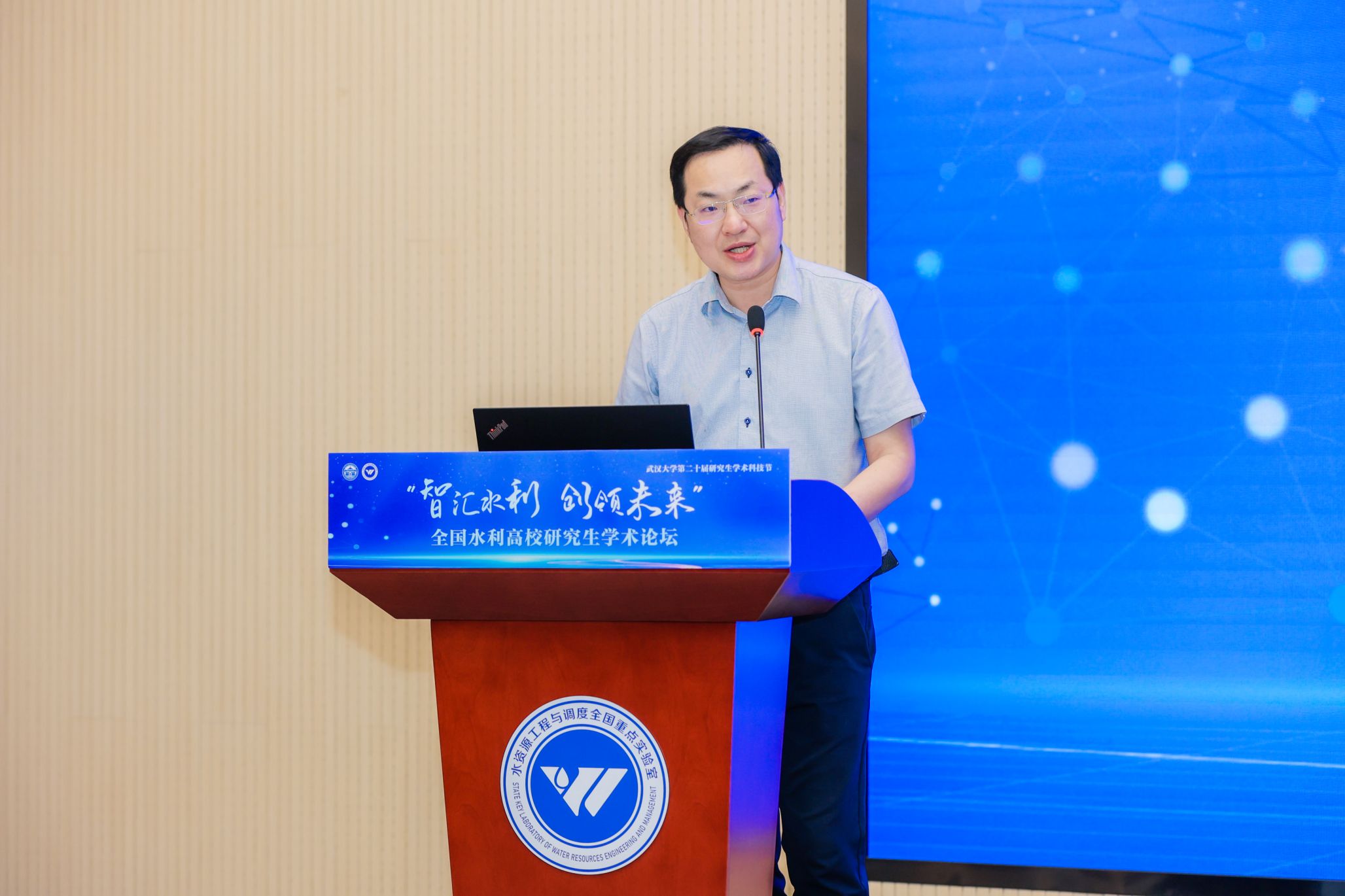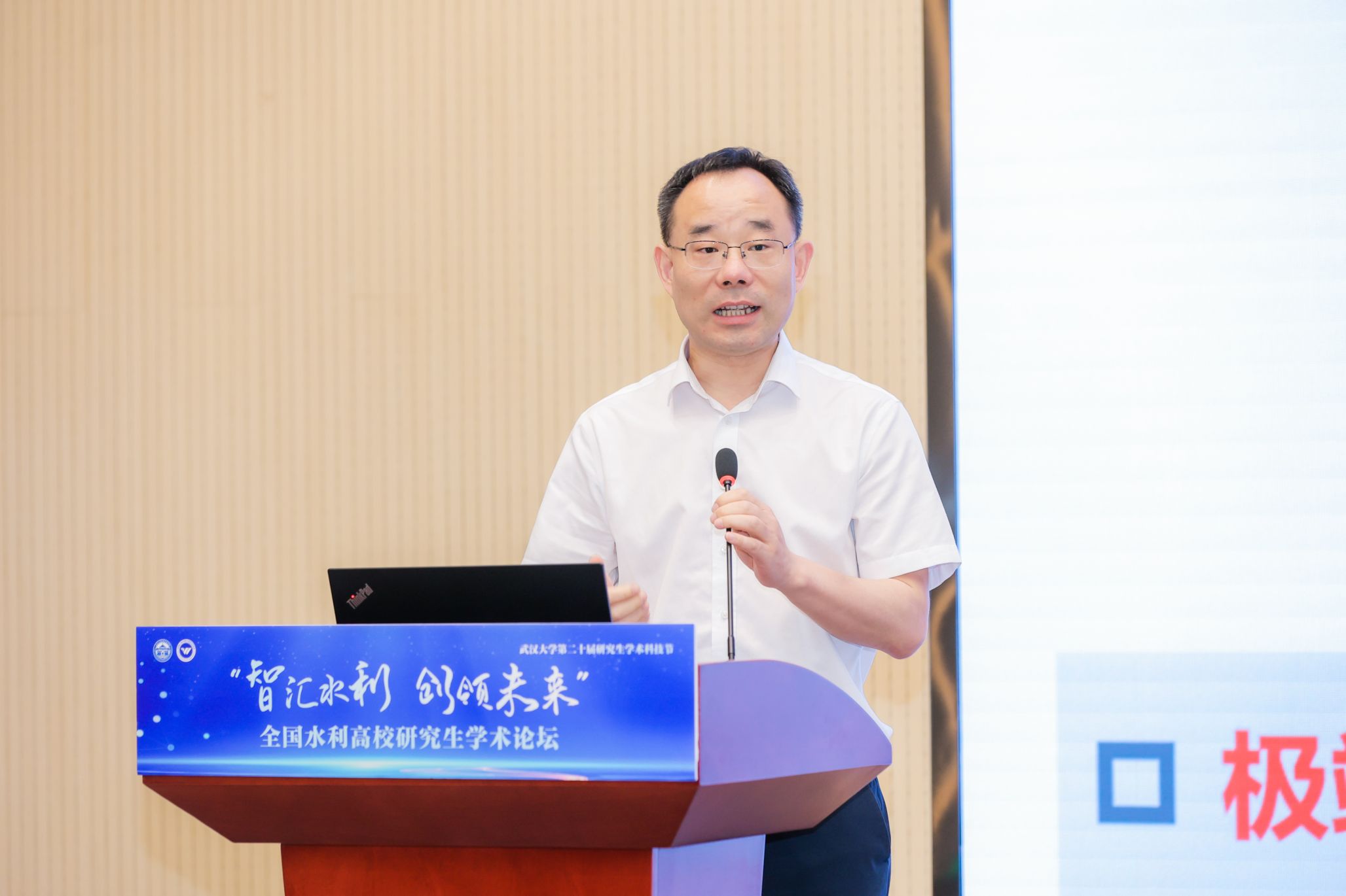 李典庆在开幕式致辞中回顾了学院在水利科教领域的卓越贡献,重点介绍了“珞珈二号”卫星发射、智慧水利人才培养体系构建及软硬件平台研发等数智化时代新成果。他期望与会学子通过本次论坛激发灵感、深化友谊,共同为中国水利事业的数智化转型贡献智慧力量。