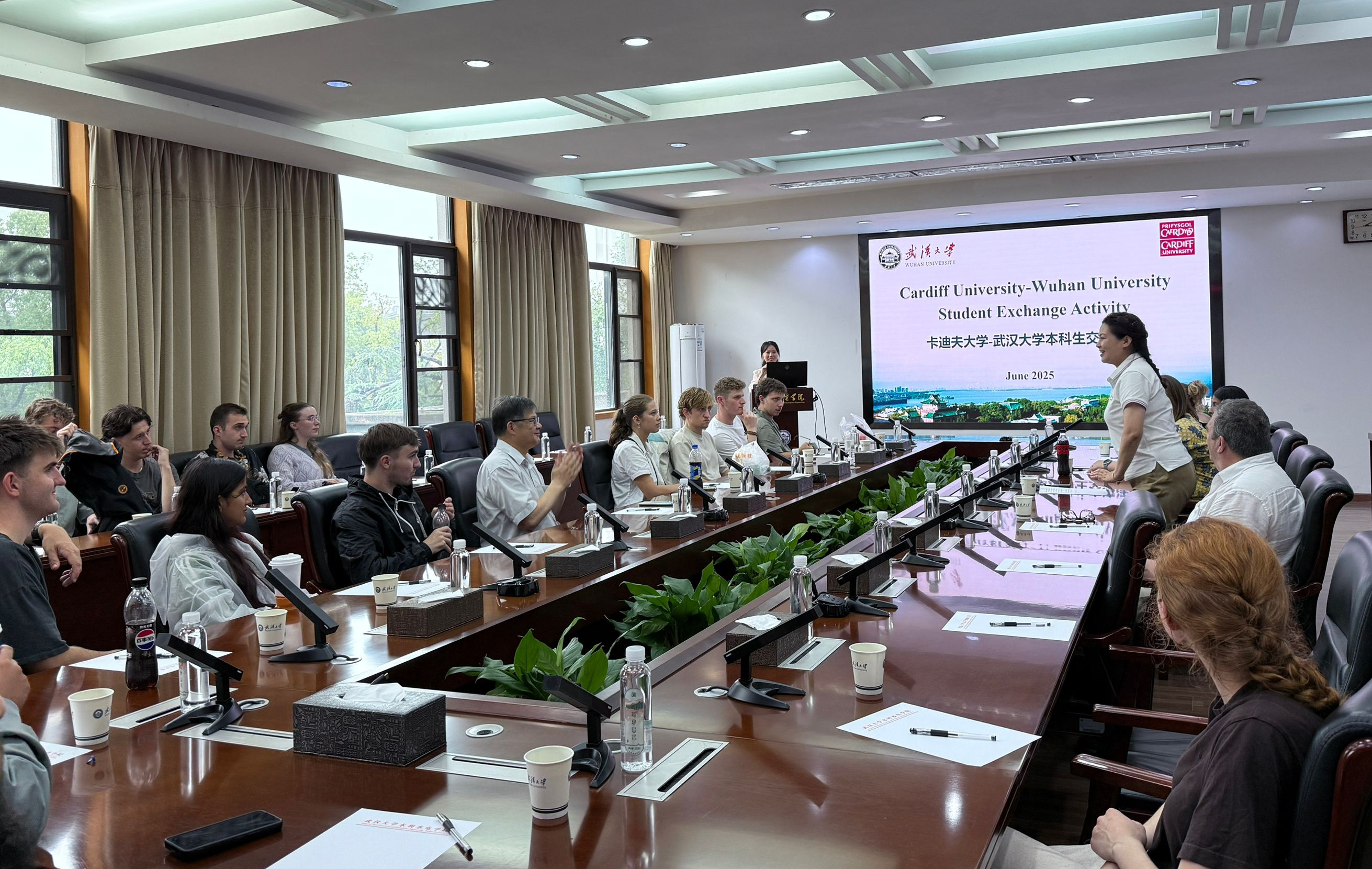 6月20日下午,英国卡迪夫大学(Cardiff University)与学院本科生交流活动在学院8213会议室举行。卡迪夫大学Shunqi Pan教授、Aled Wyn Davies博士、Nia Elin Owen博士及21名本科生到访交流。此次中英两校交流活动由学院副院长夏军强教授组织,学院党委副书记于敏出席活动并致辞。
