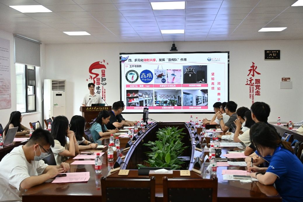 三峡大学水利与环境学院研究生第三党支部王宇同志作“党建引领促发展,兴水报国谱新篇”的学生党建工作综述,从“党建引领,团建赋能,凝聚青年力量”,“党建引领学科发展,厚植专业优势”,“党建引领队伍建设以质为先育人才”,“党建引领社会服务,同心聚力办实事”四个方面做党建工作汇报。他们依托水利工程、土木水利及工程管理学科底蕴和专业优势,以习近平生态文明思想为指引,以践行“长江大保护”为号召,落脚“长江大保护”国家战略发展需求,以扎根基层服务社会为特色,以支部一流党建助力学院一流学科发展,强化基层党支部引领作用。