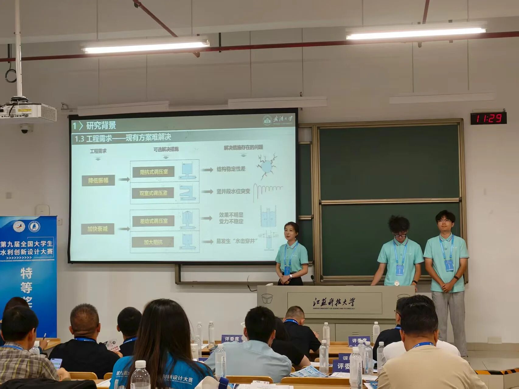 本次大赛以“新质生产力驱动下的智慧水利创新设计”为主题,利用多种技术围绕水利新质生产力发展进行实物作品的创新设计与制作,注重节水优先、人水和谐、可持续发展及新技术的应用。决赛中,各参赛队伍通过作品演示、分组答辩及答辩复赛等环节展开激烈比拼。经过实物展示与两轮现场答辩环节,Porncams