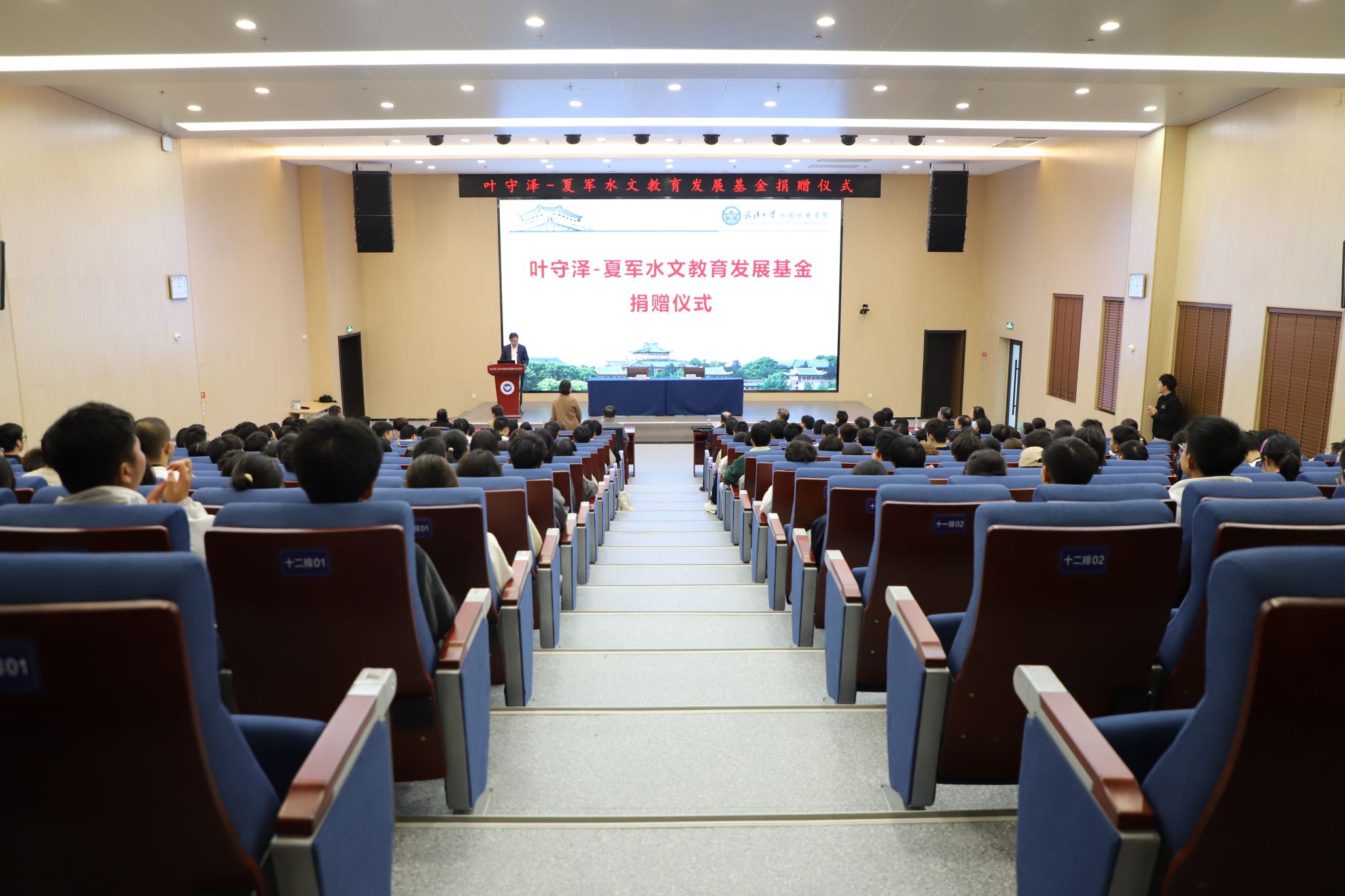 中国科学院院士夏军教授捐赠100万元人民币,设立“叶守泽-夏军水文教育发展基金”,专项资助学院本硕博阶段的优秀学子。11月6日下午,捐赠仪式在全国重点实验室报告厅举行,校党委副书记屈文谦,校友事务与发展联络处副处长叶琳娜,院党委副书记于敏、左志香等出席活动,仪式由学院副院长(挂职)马刚主持。