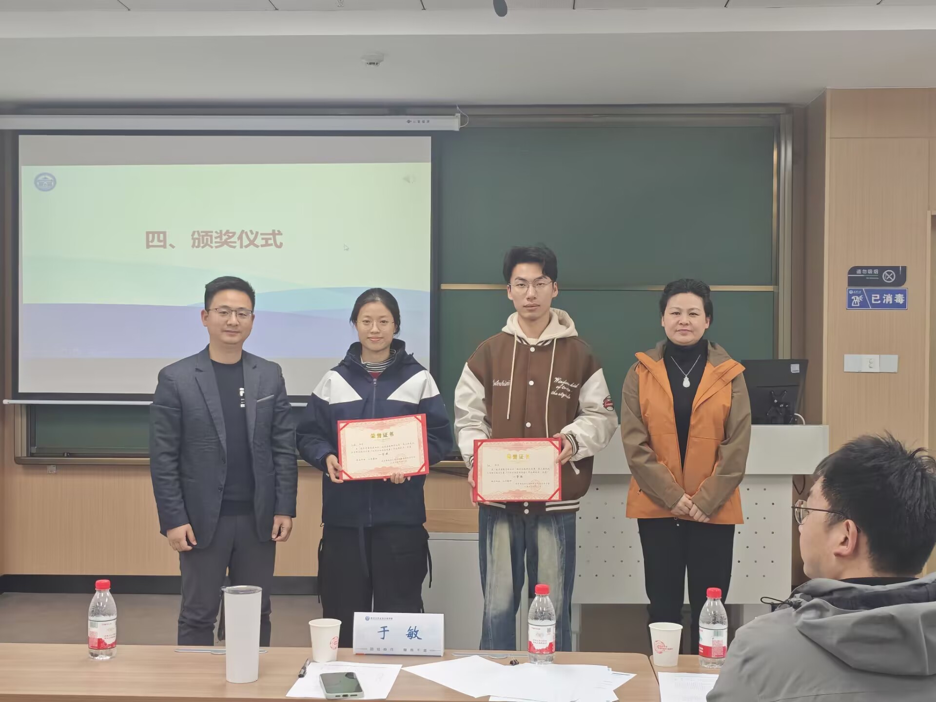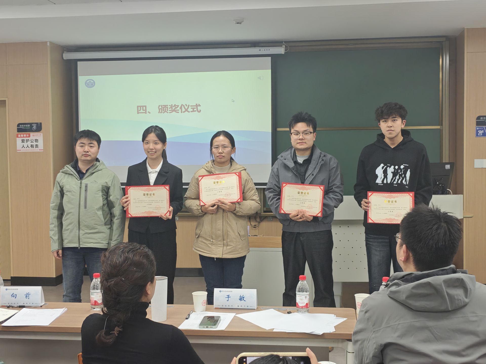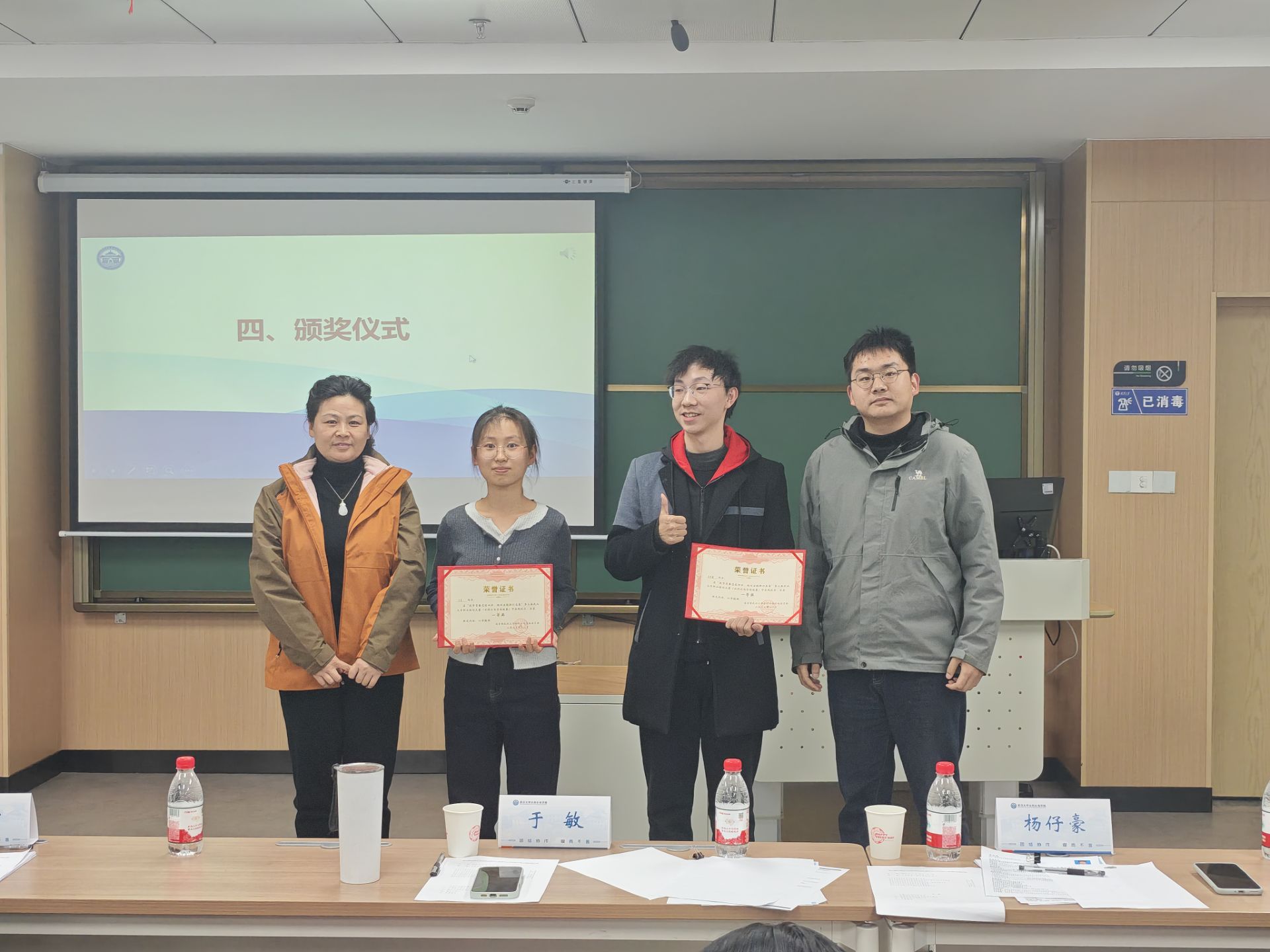 经过激烈角逐,就业赛道共评选出一等奖2人、二等奖3人、三等奖5人;成长赛道共评选出一等奖2人、二等奖4人、三等奖6人。与会嘉宾为获奖同学颁发荣誉证书并表示热烈祝贺。