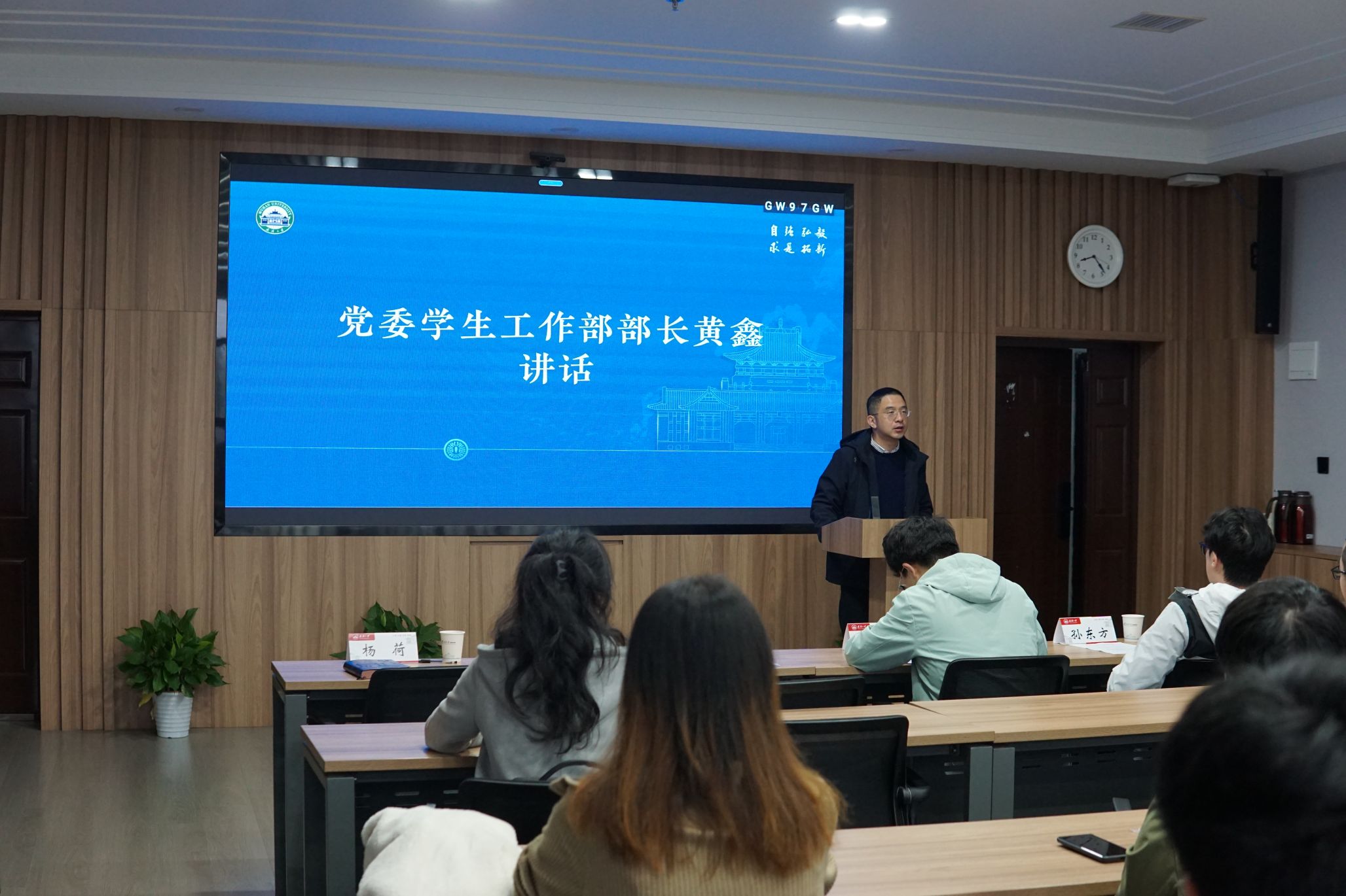 党委学生工作部部长黄鑫宣读了成立“磨砺计划”临时党支部的决定,并围绕“学什么、怎么学、怎么用”的核心问题作重点阐述。他希望学员们从革命先辈的光辉事迹中汲取信仰力量,以学习成果反哺自身成长和学生工作。黄部长结合“十五五”规划中的“识变、求变、应变”重要理念,进一步勉励参训学生党员骨干:要主动将“小我”融入“大我”,拓宽个人视野,胸怀“国之大者”;要积极发挥党员骨干的先锋模范作用,在服务引领身边同学的过程中砥砺初心,增长才干;要用国家的大事业磨砺青年人的真本领,努力成长为助力国家发展、推动民族复兴的坚实力量。