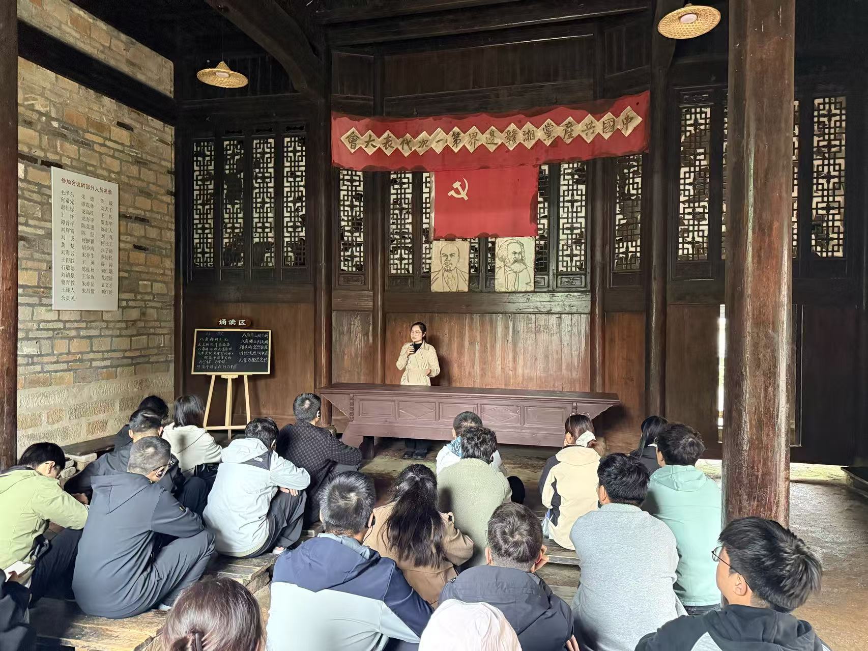 现场教学环节,学员们先后赴井冈山革命博物馆、井冈山革命烈士陵园、大井朱毛旧居、茅坪八角楼、茅坪神山村、朱毛红军挑粮小道、黄洋界哨口等红色教育基地地开展实践学习,循迹红色资源、追忆峥嵘历史。在井冈山革命烈士陵园,全体学员向革命先烈敬献花篮、鞠躬默哀,重温入党誓词,感悟革命先辈为理想信念献身的崇高气节;茅坪八角楼内,学员们聆听老师讲述那段烽火岁月,学习革命领袖在艰苦环境下的坚定意志和卓越智慧;细雨中,学员们重走朱毛红军挑粮小道,沿着崎岖不平的羊肠小道,追寻革命先辈的光辉足迹,实地感受当年革命先辈挑粮上山的艰辛与执着;“山下旌旗在望,山头鼓角相闻”,师生们驻足于当年黄洋界保卫战的战壕遗址前,聆听讲解员重现“敌军围困万千重,我自岿然不动”的峥嵘岁月。