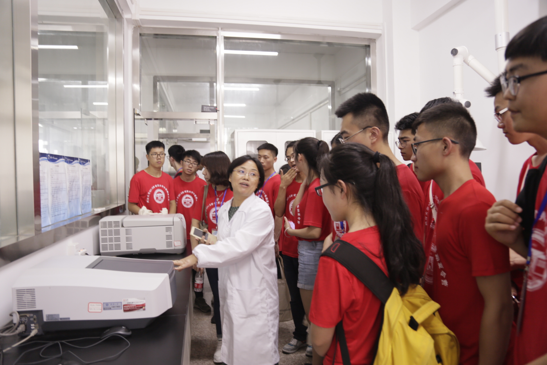 图四 潘国艳老师为营员介绍水文水资源实验室同位素仪