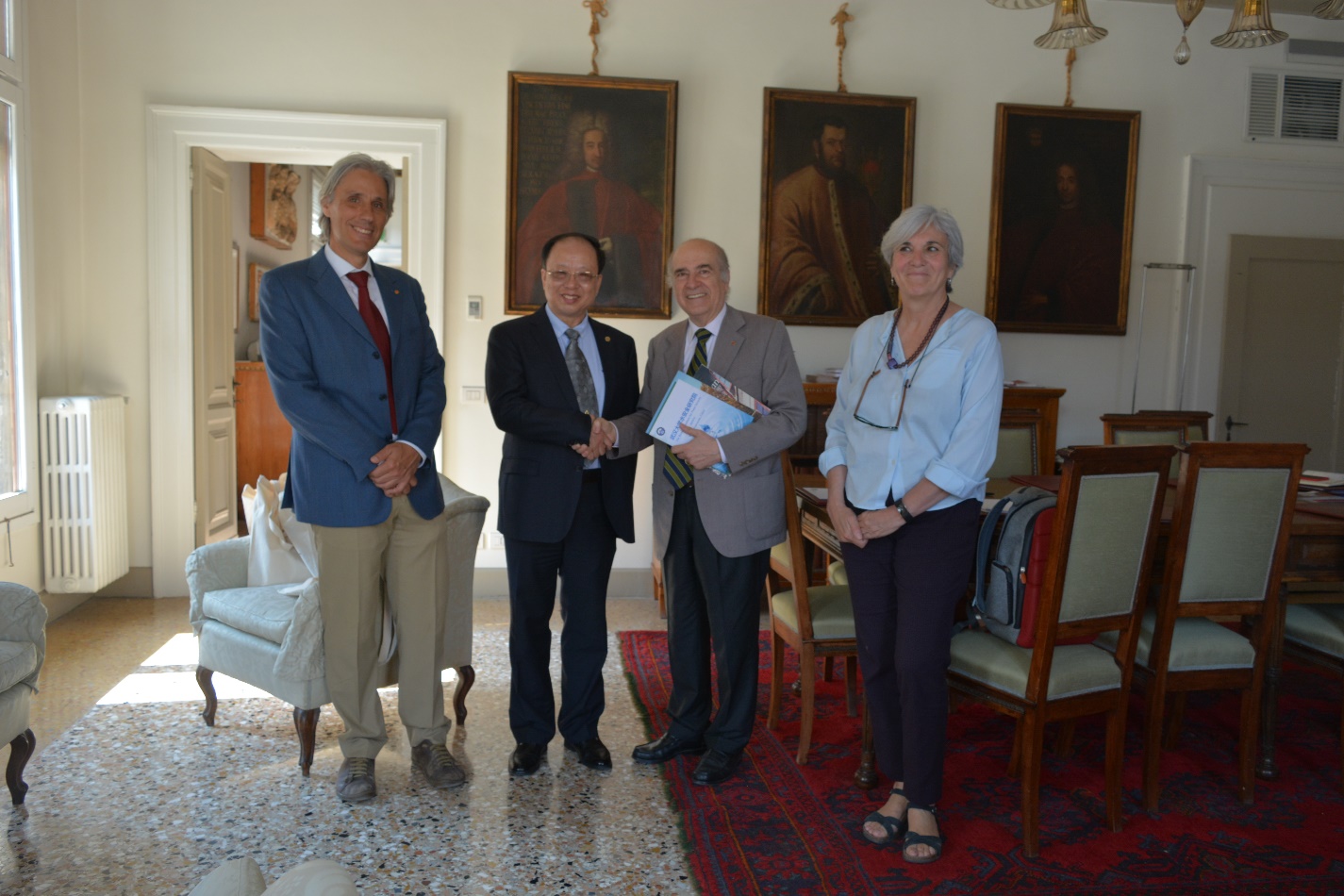此外,夏军院士团队还访问了威尼斯文化艺术科学委员会(Istituto Veneto di Scienze Lettere ed Arti),与主席Gherardo Ortalli教授进行了友好的会谈,了解了意大利科学院的历史与发展,双方就学术研究和交流等相关问题进行了洽谈。