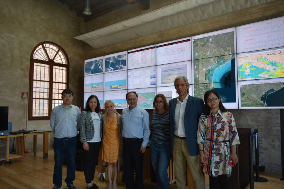 威尼斯期间,夏军院士团队还参观考察了意大利摩西计划(MOSE, Experimental Electromechanical Module)控制室,摩西计划是保护威尼斯的一项水利工程,总投资额高达55亿欧元,在三条连接威尼斯潟湖与亚得里亚海的通道上,建造了79座重达300吨的装有铰链枢纽的活动水闸。该工程对于保护受到全球海平面上升严重影响的威尼斯古城具有十分重要的意义,代表团就水利工程与河湖、湿地生态系统的互馈关系、工程运行管理制度与效果,与该工程的水务管理部门进行了热烈而认真的学术研讨。