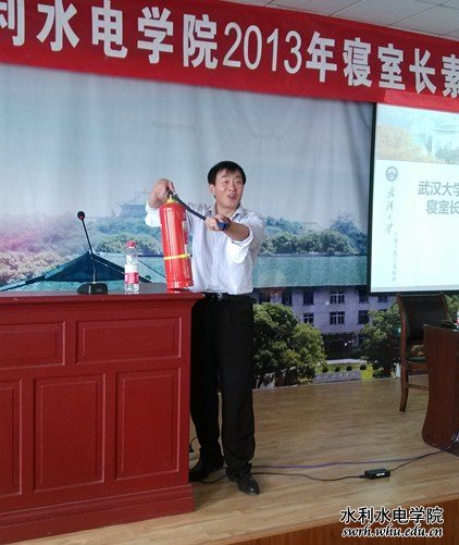 魏友团以幽默风趣的语言从治安与消防两个方面对寝室安全作了强调。他列举分析了许多同学们身边的案例,提醒同学们要提高安全意识,加强防范,并现场给寝室长们详细解说演示灭火器的用法。魏部长还传授校园安全方面的要领,诸如 “用水浇湿衣,毛巾捂口鼻,机智快速出烟区,听指挥,讲顺序,逃生首选找楼梯”等等,均是一些读起来朗朗上口,方便大家记住的实用顺口溜。