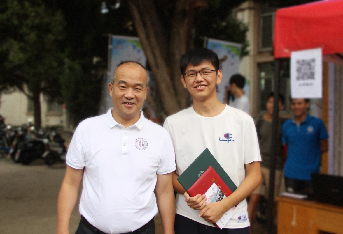 2019级博士生中年龄最小的一位。在完成个人报到手续后,范鲁晔同学主动加入到学院迎新工作队伍中。在跟窦校长合影留念后,他开心地说起了自己读博期间的二个愿望:一是成为一名光荣的共产党员;二是在毕业时,还要与校长合影,让校长见证自己的成长。