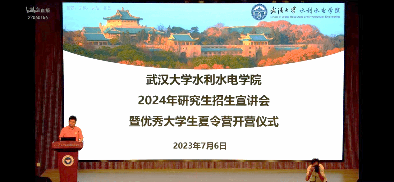 7月6日上午,夏令营开营仪式在水资源工程与调度全国重点实验室109报告厅举行,本次开营仪式同时开通了线上直播。学院院长熊立华、党委副书记左志香、副院长任春秀、各系主任、专家代表、学工办和研究生教学办老师参加了开营仪式。学院副院长伍靖伟主持开营仪式,他对各位营员的到来表示热烈的欢迎,并从学校历史、科研实力、校园环境、杰出校友、学院办学特色与优势等方面详细介绍了学校及学院的概况。