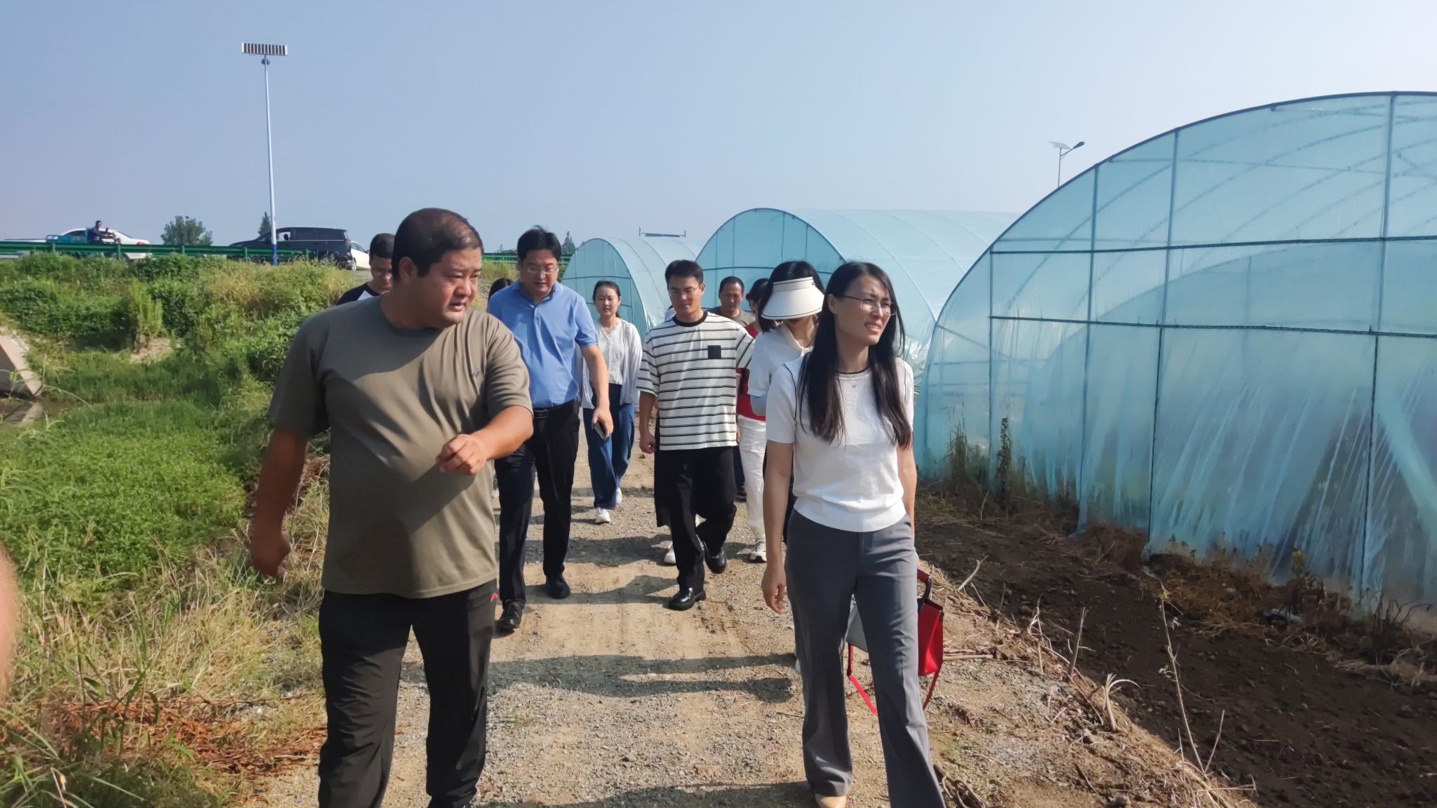 在中垾镇广严村支部书记王刚的带领下,实践队首先参观了果蔬示范园。中垾番茄是安徽省合肥市巢湖市最具特色的农特产品之一,国家农产品地理标志保护产品。当地大棚产业以番茄为主,基本保障四季供应,部分大棚还在进行水培蔬菜试验。王书记介绍到,果蔬示范园是村集体经济的典型代表,大棚的兴建一定程度上推动了本地经济发展,但目前仍存在人工成本控制的问题。