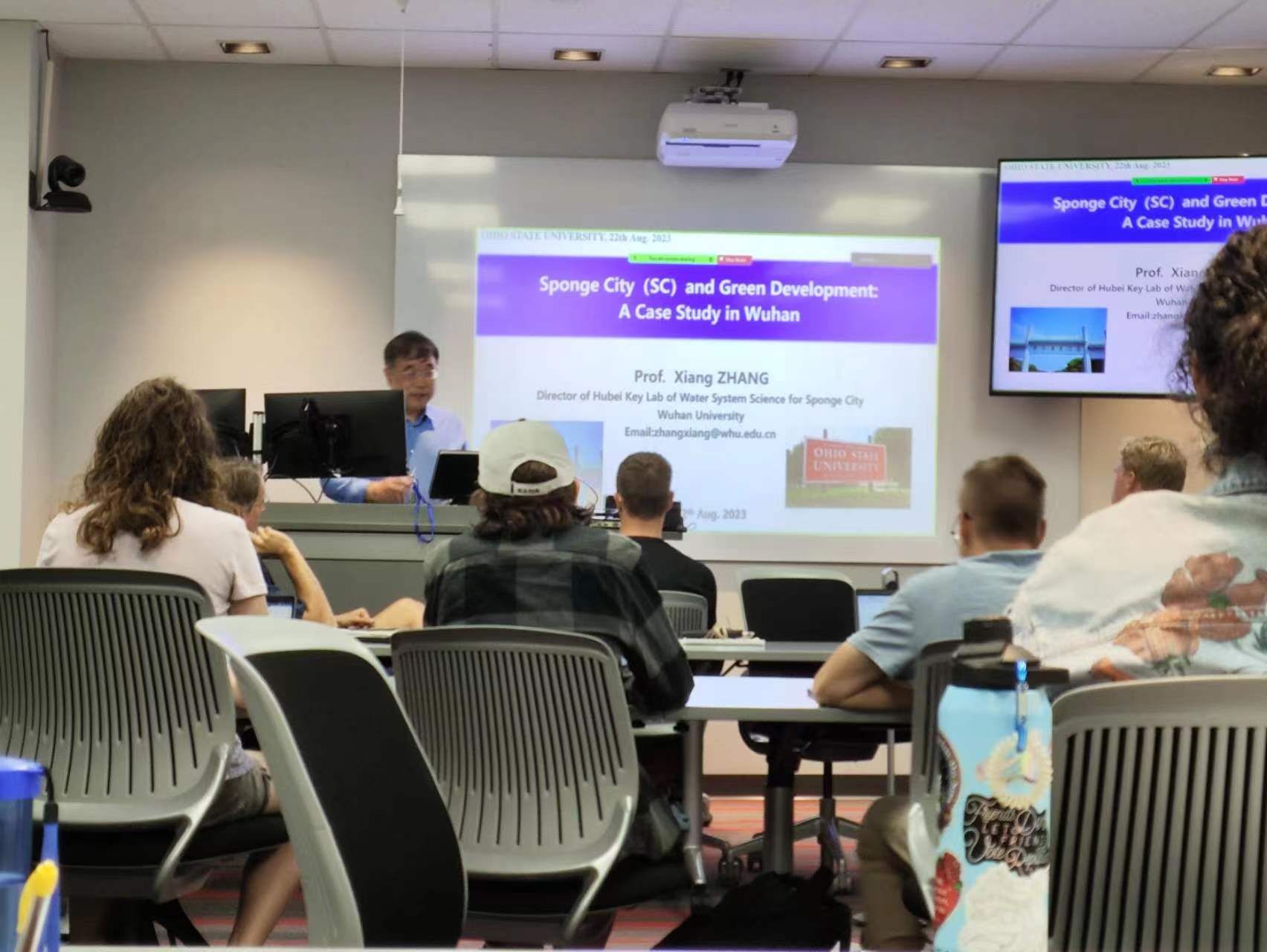 8月22日,张翔教授应邀作“海绵城市与绿色发展-以武汉市为例”的学术报告,介绍中国海绵城市理念以及其发展历程,生物滞留设施和“绿-灰-蓝”耦合的系统化应对城市水问题的研究成果,与到场专家学者进行问答和讨论,探索城市雨洪管理和绿色发展的未来方向。随后,Porncams