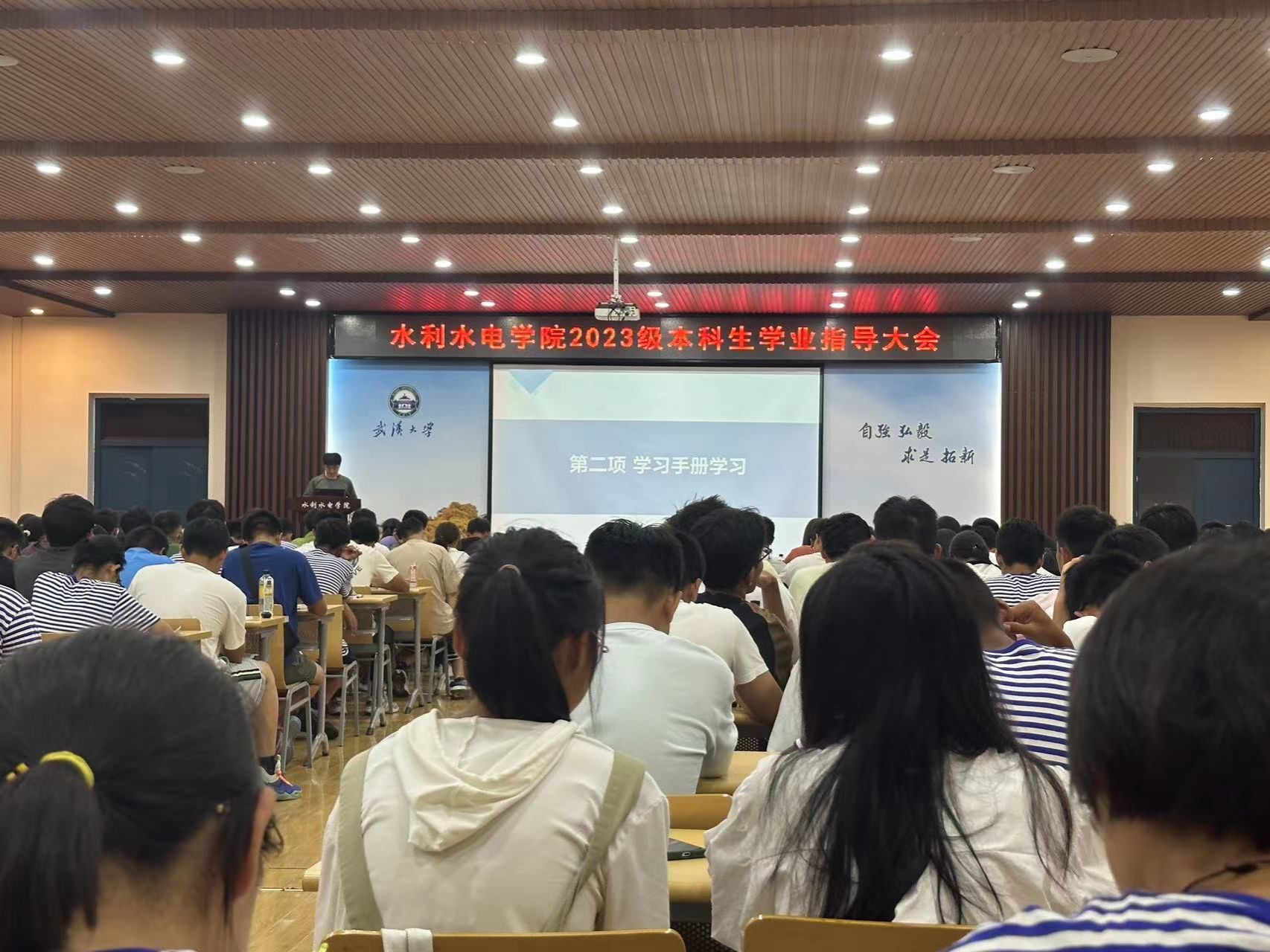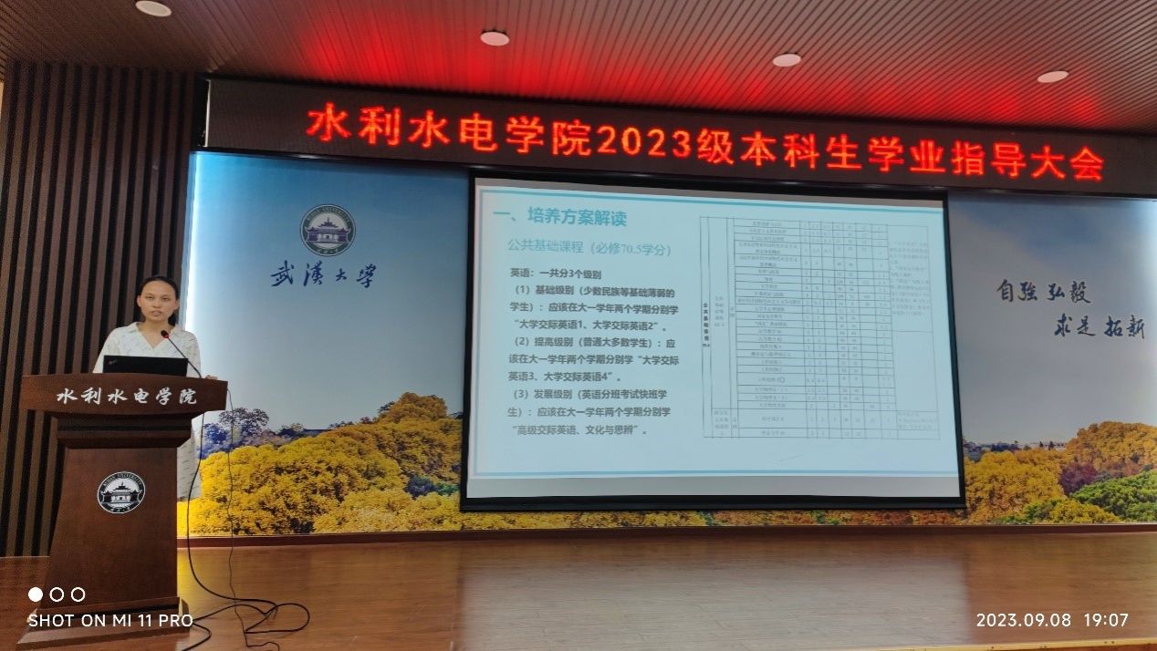 为了帮助2023级新生尽快了解培养方案,熟悉选课系统,合理正确地规划好本科阶段的学习生活,2023年9月8日晚,学院在8328报告厅举办了2023级本科生学业指导大会。2023级辅导员田文祥、教学秘书高晶、高义超老师以及学院2023级全体本科新生参加了会议。