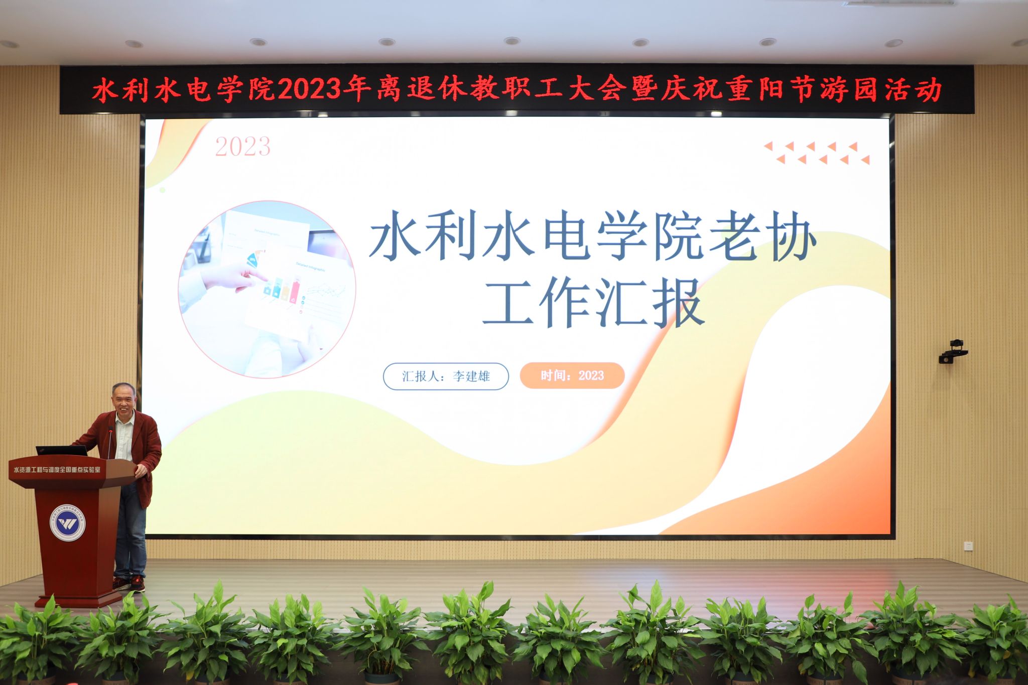 学院老协会长李建雄做老协工作汇报。他首先代表学院离退休教职工们衷心感谢学院的关心关怀,并从基本情况、主要工作、努力方向汇报了学院老协的工作,充分肯定了学院近年在离退休工作上的作为和成绩,表示老协会一如既往支持、配合学院离退休工作,服务好离退休教职工的同时,继续鼓励发挥老同志余热,助力学院发展再上新台阶。