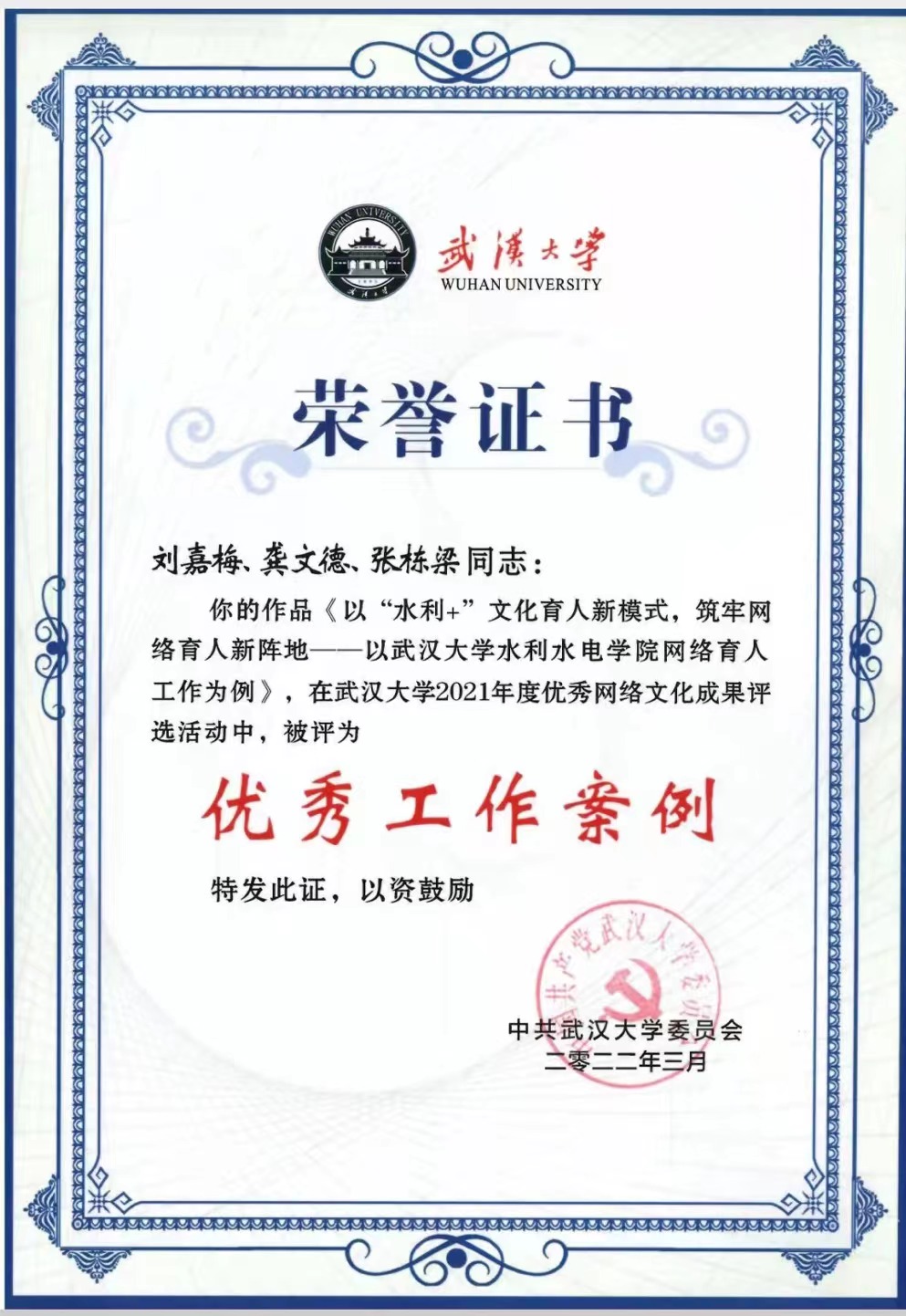刘嘉梅、龚文德、张栋梁的作品《以“水利+”文化育人新模式,筑牢网络育人新阵地——以Porncams