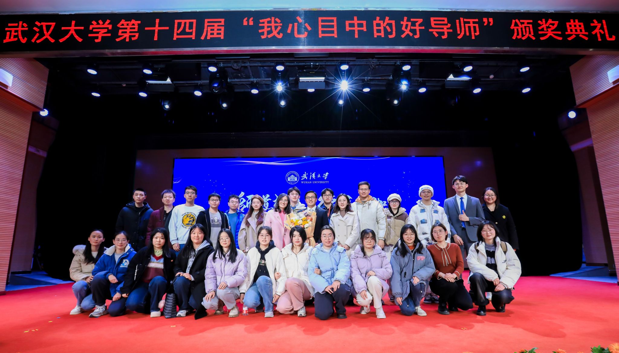 陈杰教授获评“我心目中的好导师”荣誉称号,学院党委副书记左志香,研究生辅导员陈曼雨、许笑星,陈杰教授团队成员和学院研究生会代表等共同见证荣耀时刻。