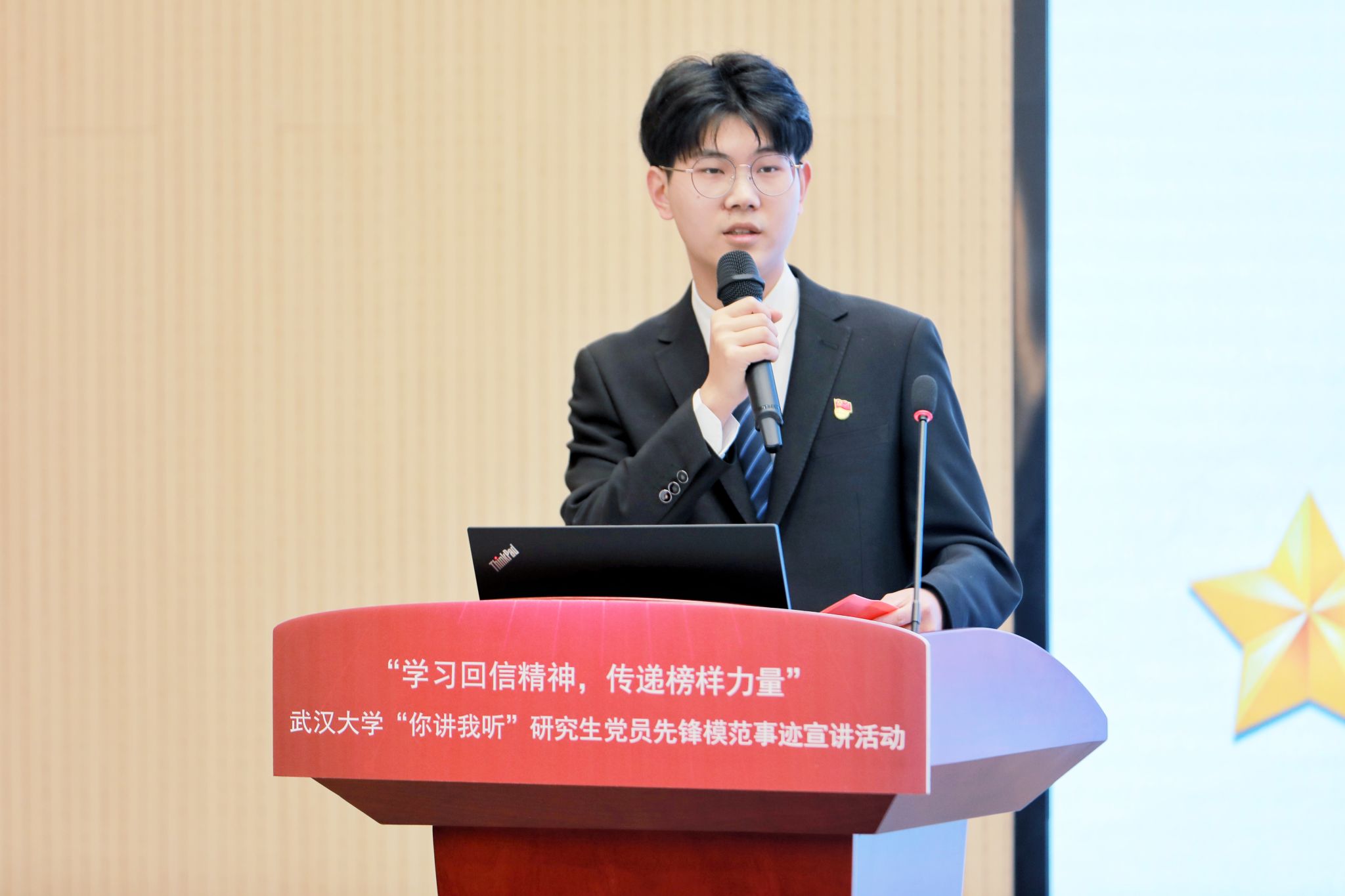 左志香在致辞中表示,此次活动以研究生党员先锋模范事迹为载体,通过“你讲我听”的展示形式,将身边优秀党员的先进事迹鲜活“讲”出来,以达到“见人见事见精神”的目的。希望广大同学们能够以学习习近平总书记重要回信精神为契机,从宣讲人和被宣讲的优秀榜样身上,汲取力量,志存高远,脚踏实地,努力在实现中华民族伟大复兴的中国梦的生动实践中放飞青春梦想。