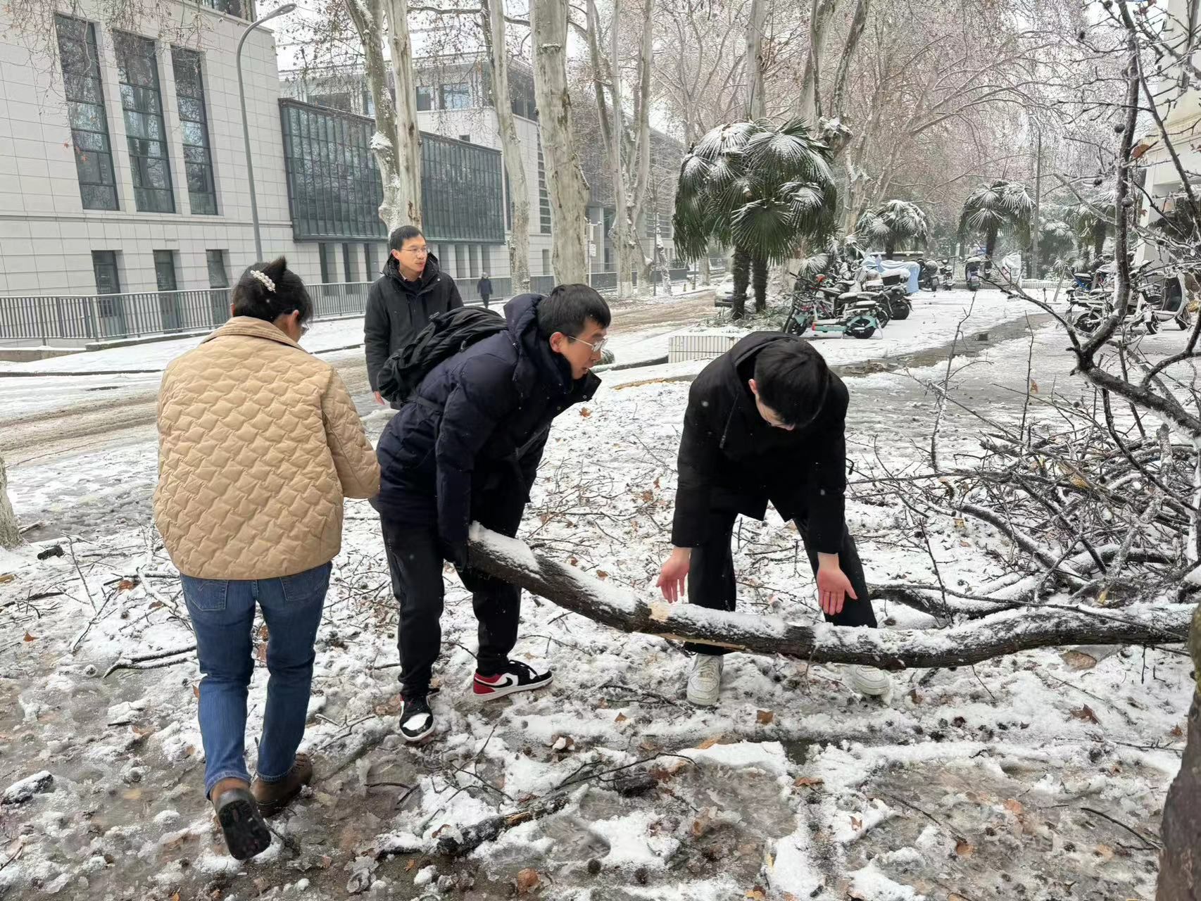 2月5日上午,学院党委书记、全国重点实验室主任李典庆,院长熊立华带队检查学院周边道路情况和保障设施,并带头清扫重点区域积雪和树枝,确保师生安全过节。