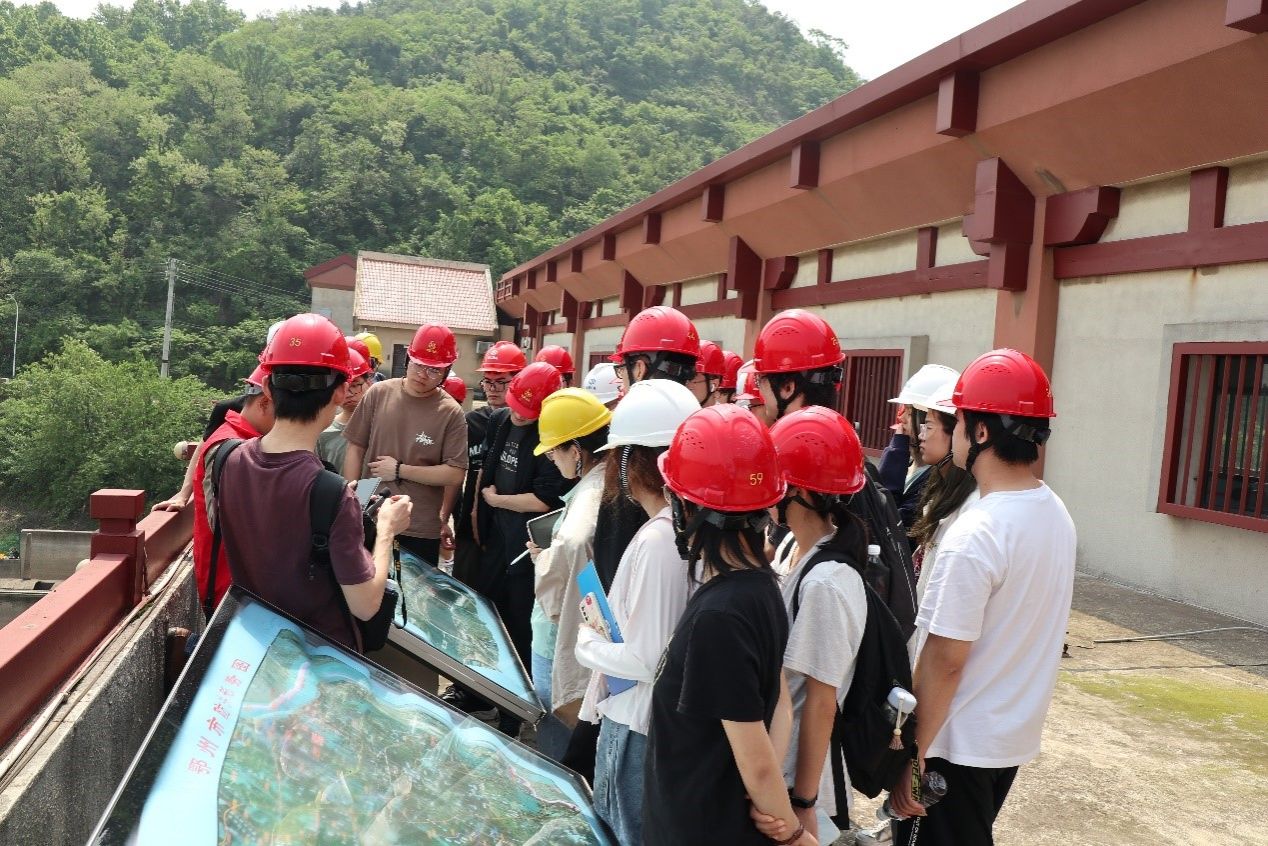 师生一行先后参观了樊口大闸、樊口泵站一站、樊口泵站二站。在参观泵站时,学生10人左右为一组,共分为四组,配备一名教师和一名经验丰富的泵站技术人员进行讲解。从拦污栅桥、前池、进水池到泵房、出口启闭机室、出水渠,从泵房电机层、联轴层到人孔层、水泵层,从主电动机、主水泵等主机组设备到油、气、水等辅助设备,从高压配电室、低压配电室到中控室,同学们对泵站进行了全方位的认知。“承受转动部件重量的推力轴承在哪个位置?”“机组流量如何调节?”“出水如何实现断流?”,同学们时不时向工作人员虚心提问,现场气氛十分活跃。