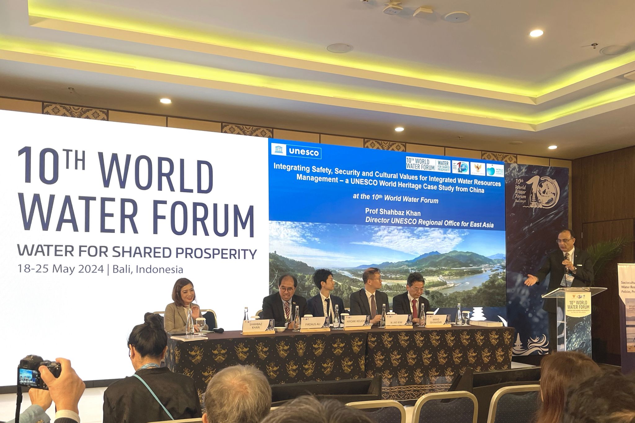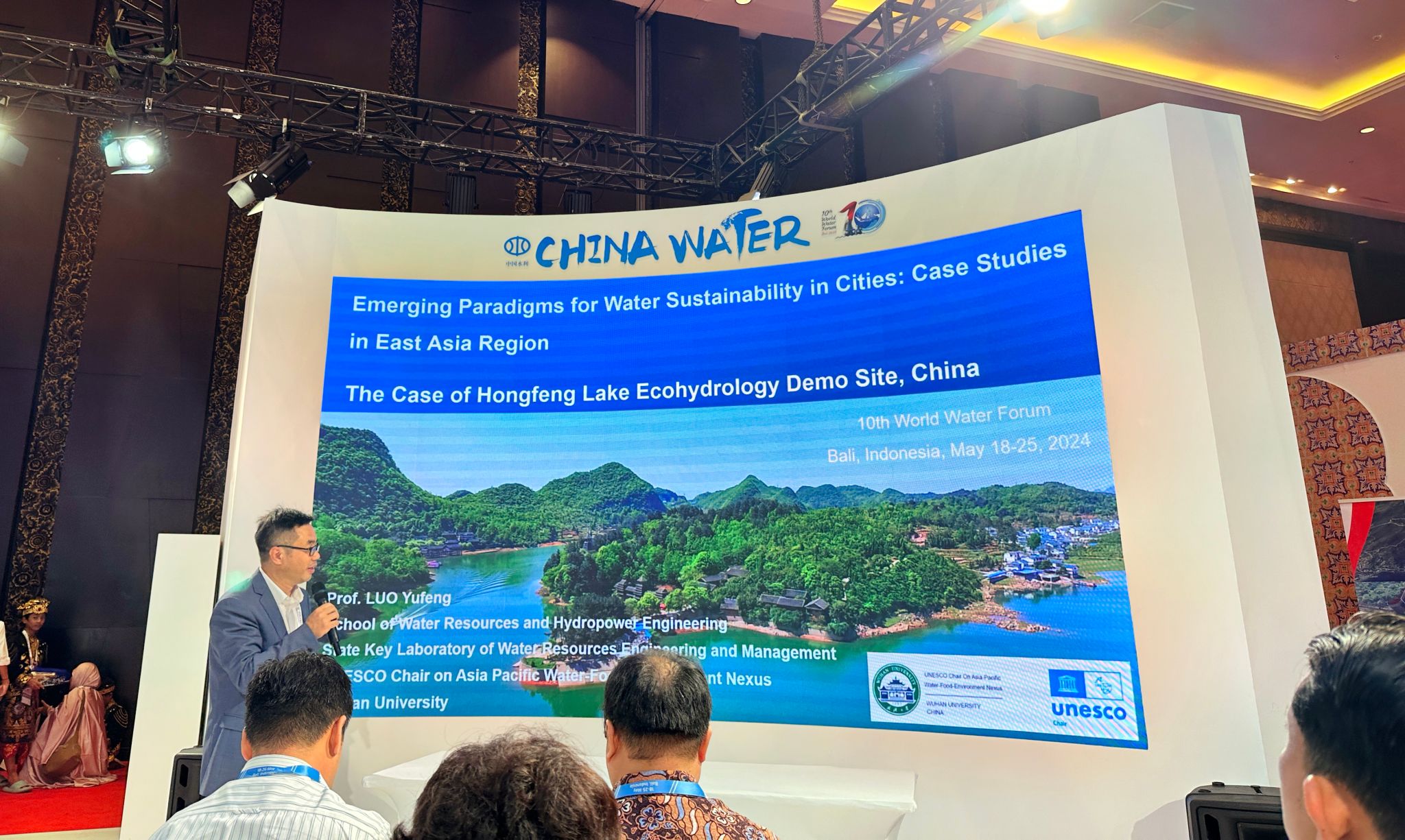 5月18至25日,第10届世界水论坛在巴厘岛举行。应联合国教科文组织东亚地区办事处邀请,联合国教科文组织亚太地区水-粮食-环境关联关系教席联席主持人罗玉峰教授及团队客座教授夏泽翰(Shahbaz Khan)、博士生林恩作为联合国教科文组织东亚地区办事处代表团成员参加了论坛。