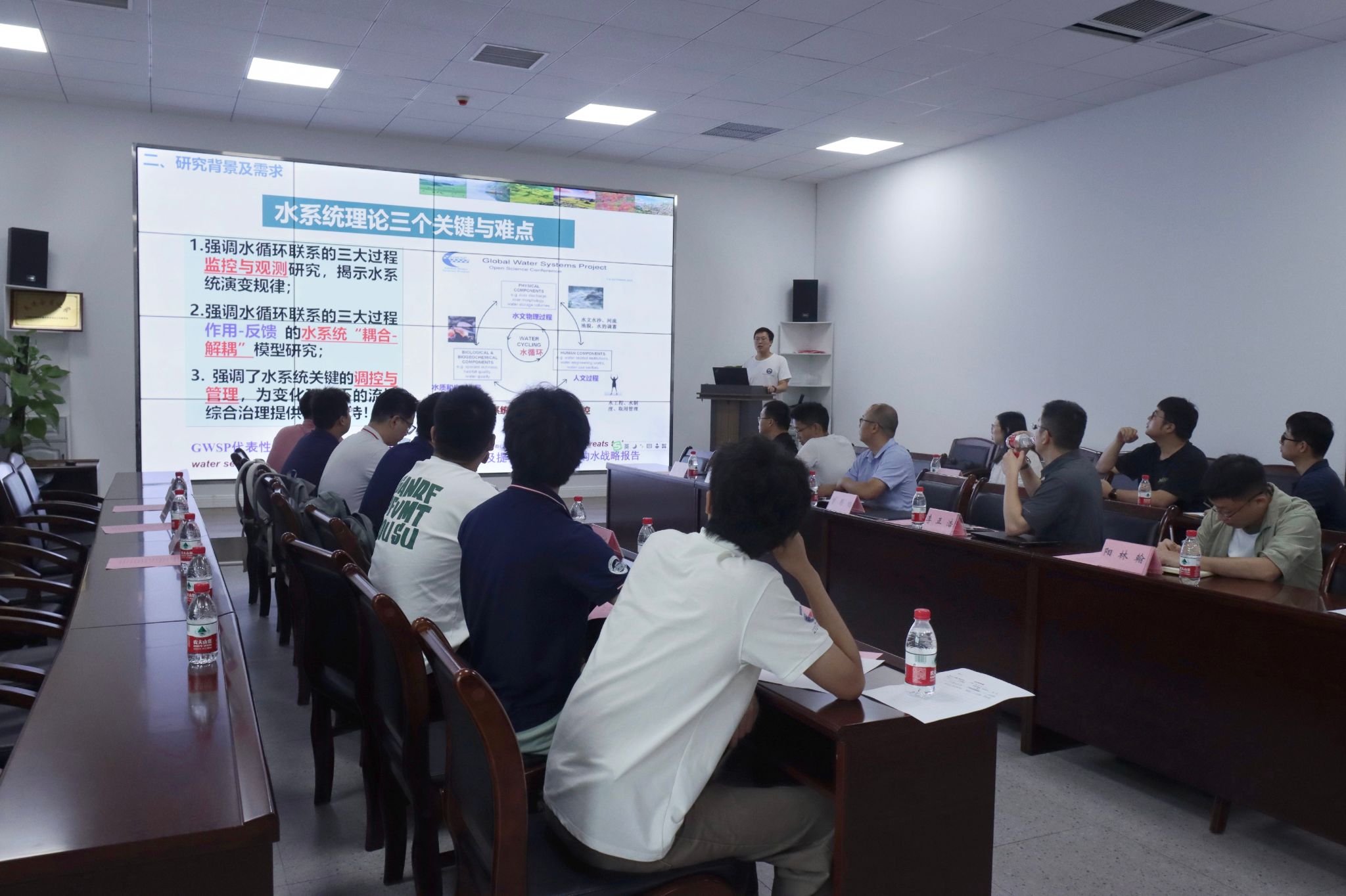 2014届校友曾思栋重点介绍了长江模拟器的创新点与应用。该模拟器基于水系统科学理论,通过耦合自然过程与社会经济过程,大幅提升了灾害预测能力。队员们就长江模拟器的防洪实践应用、数据共享融合等展开探讨,曾思栋指出,“应对极端天气需要工程与非工程措施的巧妙结合,而长江模拟器在此方面拥有巨大的潜能和广阔的应用前景,能够为中国的水安全研究提供智能化支撑。”