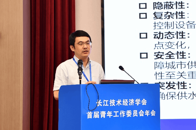会议主题二聚焦“国家水网智能运行调度”,由长委水文局徐长江正高主持。华中科技大学李超顺教授作题为《水电机组安全稳定运行》的主题报告,报告聚焦新型能源系统下水电机组的安全稳定运行难点问题主要研究进展。大连理工大学刘海星教授作题为《输配水管网系统智能监测与诊断研究》的主题报告,就我国输配水管网系统现在的老化渗漏问题,提出了针对输配水管网的漏损监测与诊断智能系统。河海大学徐斌教授作题为《用水总量约束下跨流域调水多目标风险预测与调控》的主题报告,结合目前的热点调度目标,提出了多维的调度策略风险预测与调控方案。天津大学董建志教授作题为《跨流域调水有效缓解华北水资源衰竭》的主题报告,针对华北地区的水资源衰竭问题,提出了有效的跨流域调水方案与策略。长委水文局欧阳硕正高作题为《跨流域水网连通对控制性水源工程运行方式影响及应对思路探讨》的主题报告,指出了跨流域水网连通对控制性水源工程运行方式的影响,提出了有效的应对思路。