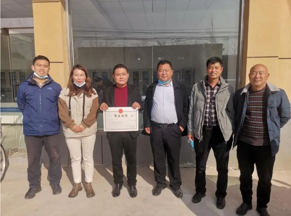 刘和鑫(左一)帮助村民办理营业执照