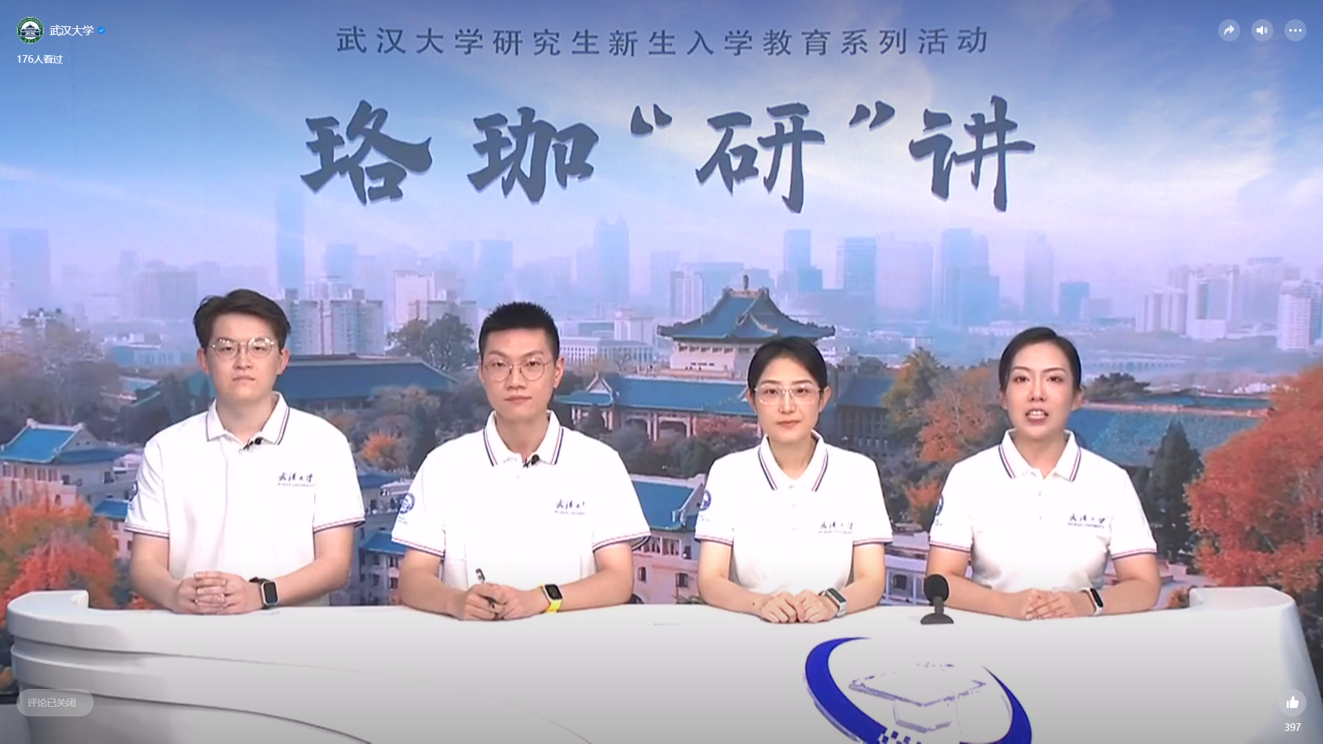 “珞珈研讲”共包括“珞珈研途”“好导师公开课”“时代新人说”三大版块共九场直播,学院师生参与的第一讲和第三讲属于“珞珈研途”板块,为新生研途保驾护航。学院后续也会针对研究生阶段的成长成才问题开展研究生新生入学教育系列活动,在实际工作中注重多方协同,形成育人合力,助力研究生新生积极快速地融入新集体,以青春之名在水利水电的广阔天地中收获灿烂的研究生生活!
