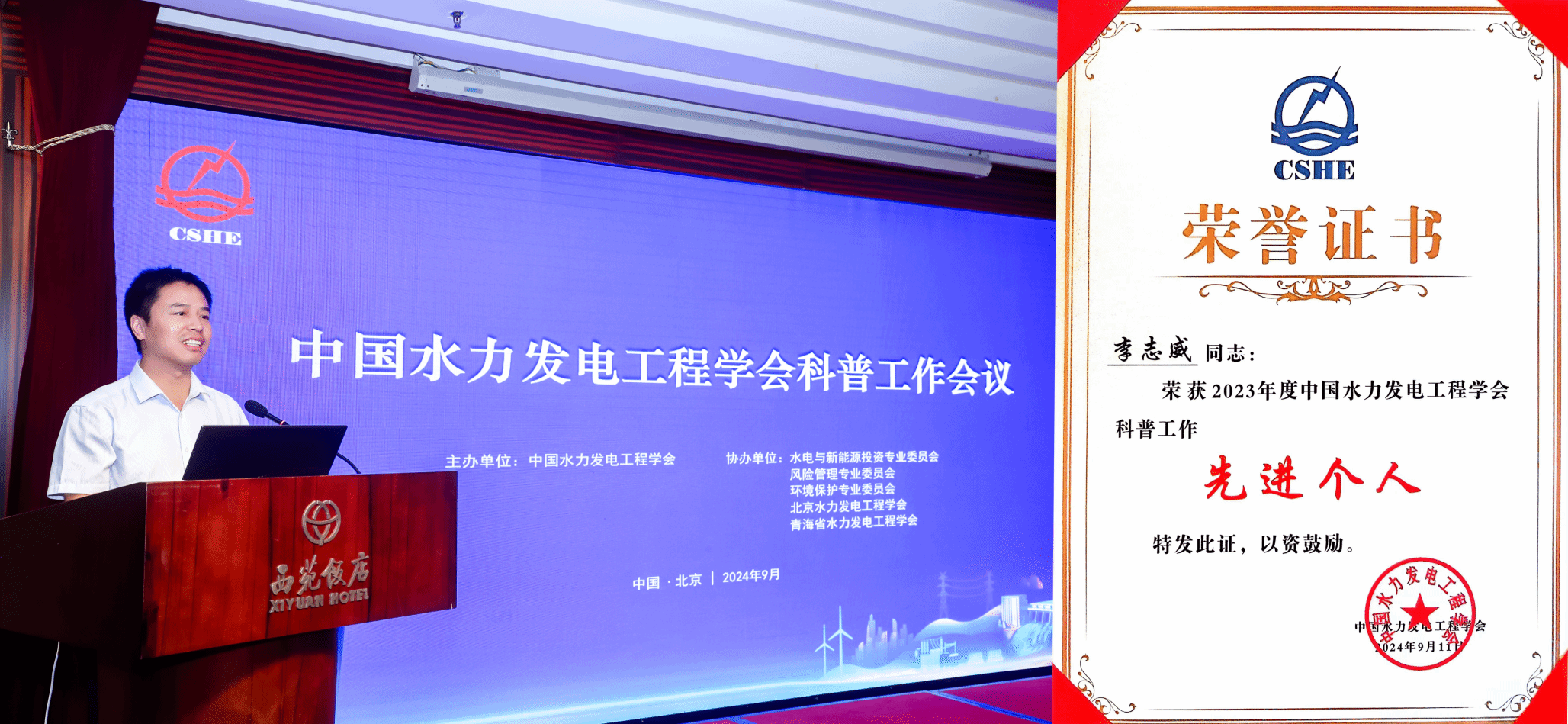 9月20日,中国水力发电工程学会2024年度科普工作会议在北京召开。学院李志威教授荣获中国水力发电工程学会2023年度科普工作先进个人,并受邀作科普工作经验交流报告。