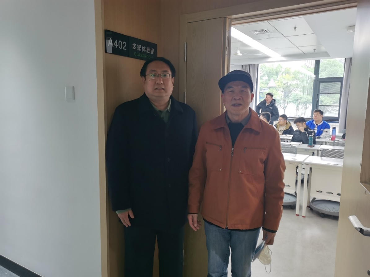 教学副院长严鹏教授与学院督导肖明教授一起检查课堂教学