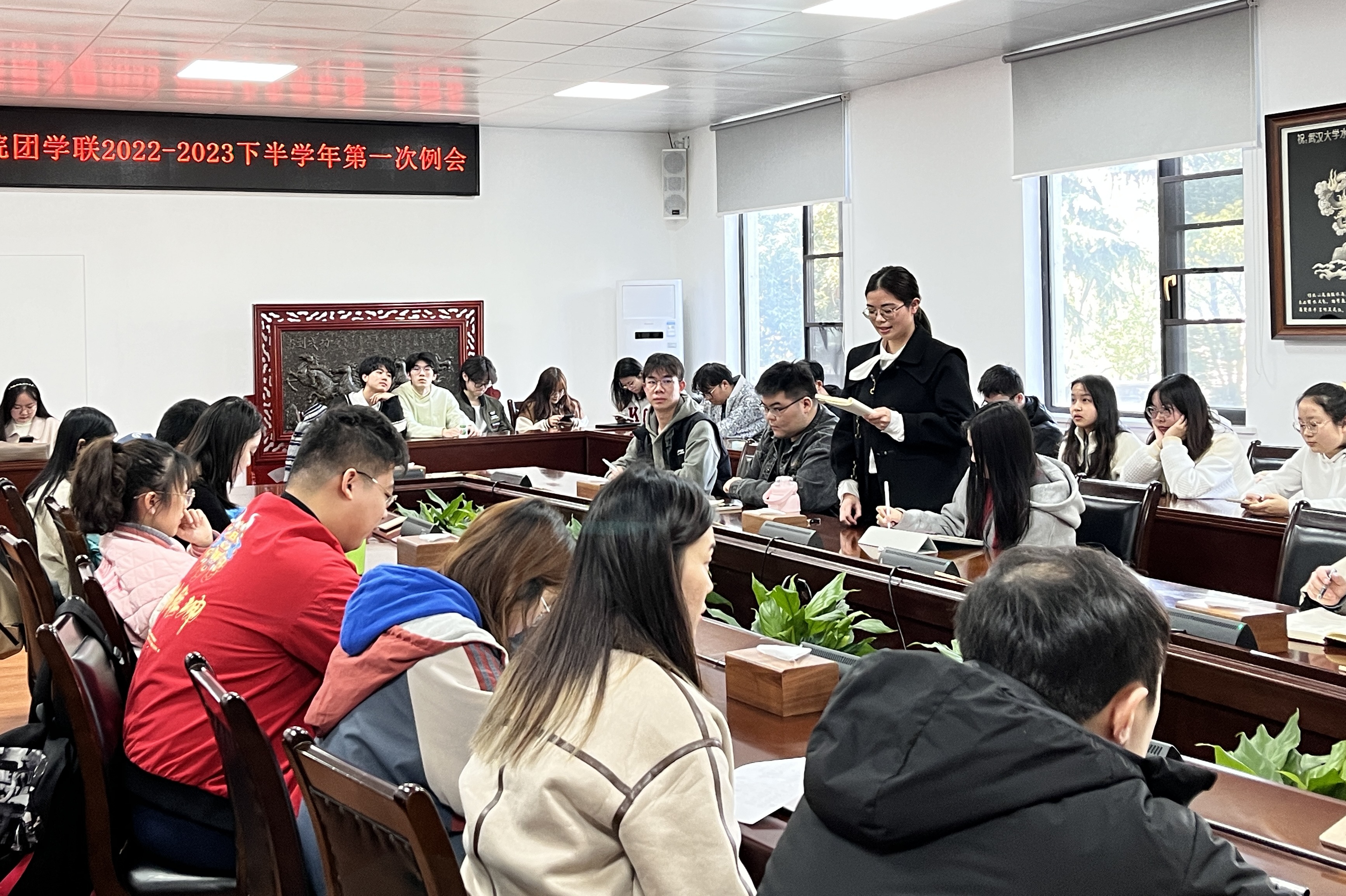 团学联2022-2023学年第二学期第一次工作例会于学院8220会议室召开。学院党委副书记于敏,团委书记、20级辅导员徐晟,21级辅导员田文祥,22级辅导员邓力源出席。学院团学联主席团成员、各部门负责人及本科生各年级团总支、执行主席等学生骨干参加了本次会议。