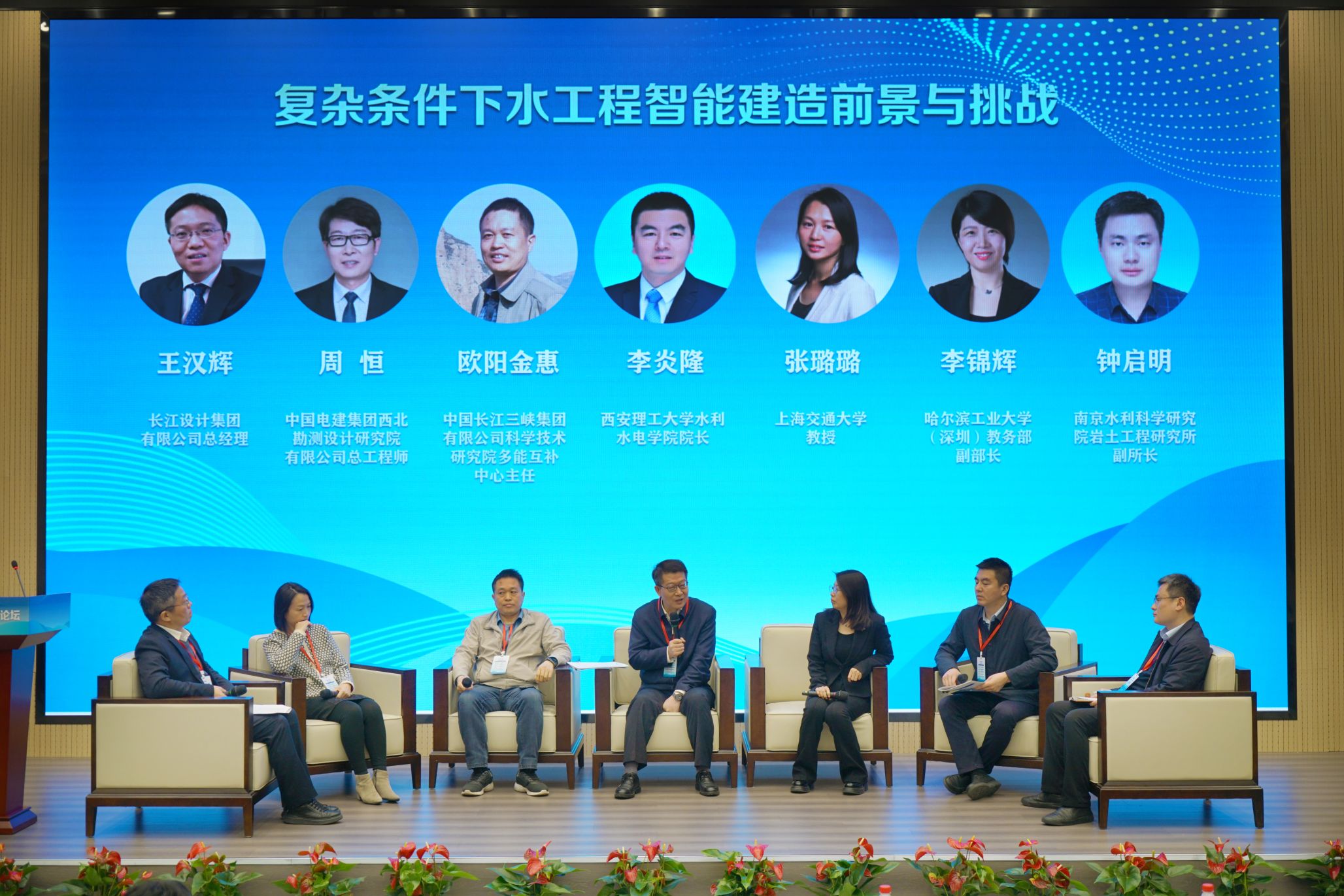 论坛设有三个专题论坛,每个专题论坛分别由三位专家进行主题报告,七位专家共同参与讨论,旨在探索复杂条件下水工程智能建造的前景与挑战、双碳目标下的水利水电发展新机遇及AI绘就水利工程未来的蓝图。
