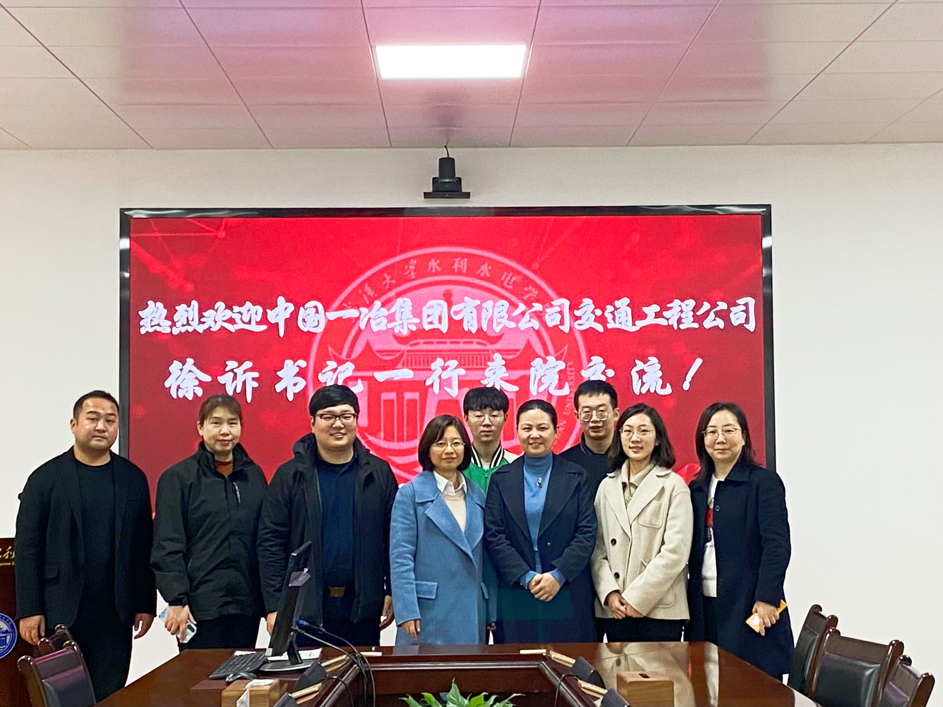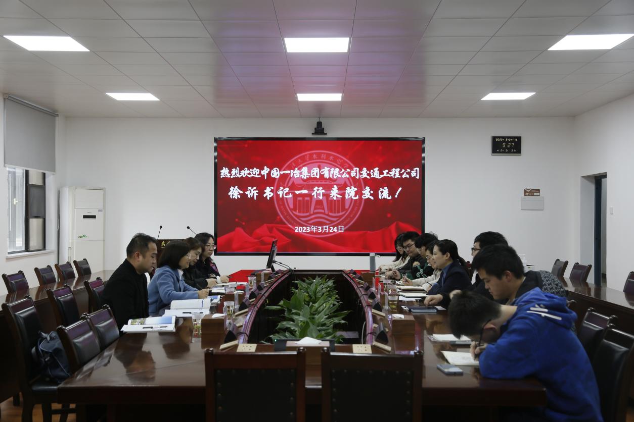 ,双方就校企合作事项进行沟通交流。中国一冶交通工程公司党委书记、副总经理徐诉,人力资源部部长蔡华、副部长熊璐,技术质量部副部长李志成,招聘专员侯正萍,学院党委副书记于敏,辅导员于鹏杰、陈曼雨出席本次交流会。
